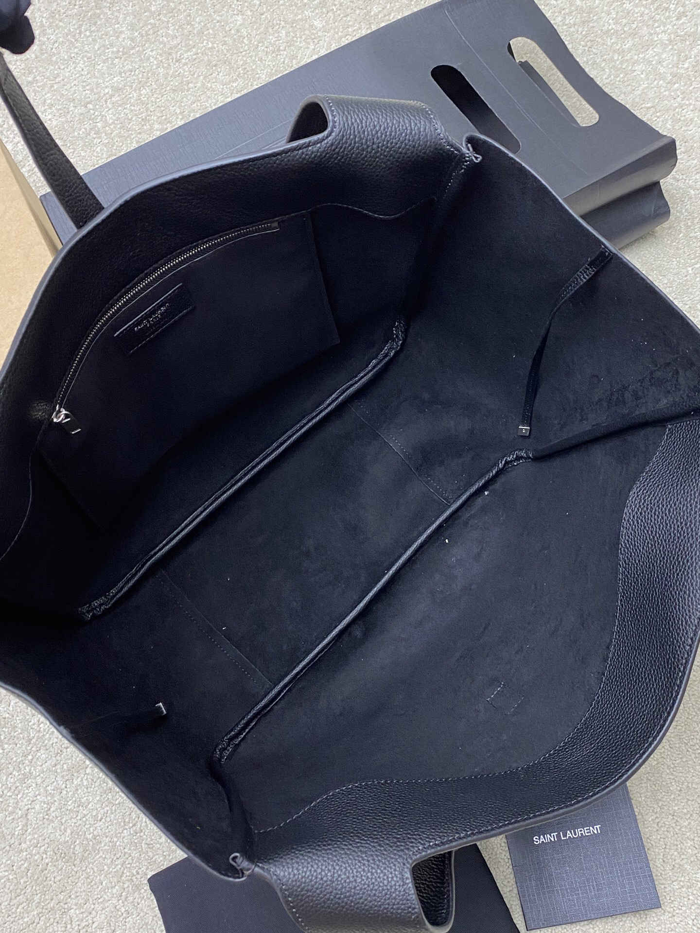 CASSANDRE。空间充裕,搭配同色系绒面革衬里,设有一个主隔层和一个内部拉链口袋。内部系带设计,两侧可以根据需要折叠或展开。柔软鹿皮bea