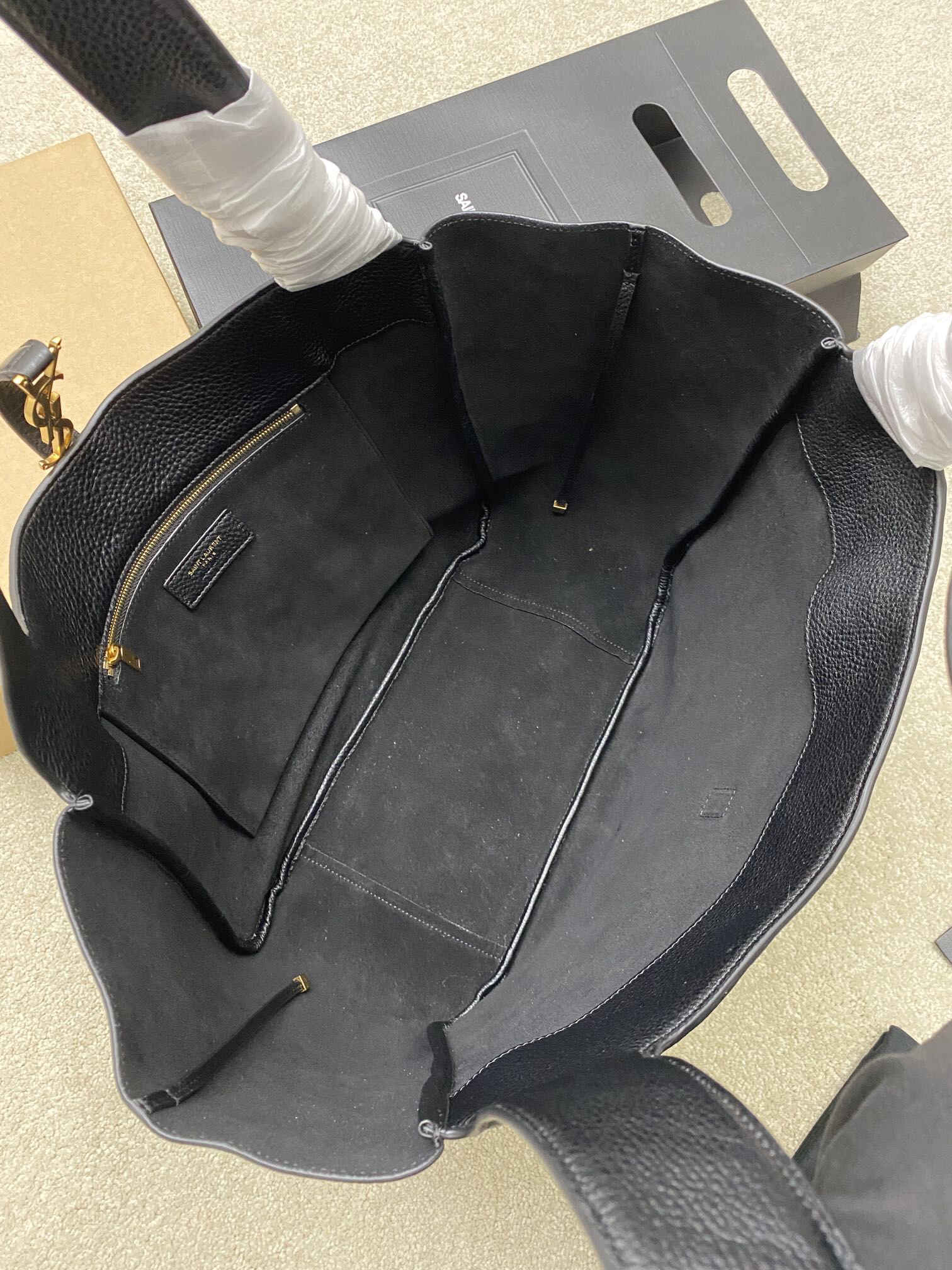 CASSANDRE。空间充裕,搭配同色系绒面革衬里,设有一个主隔层和一个内部拉链口袋。内部系带设计,两侧可以根据需要折叠或展开。柔软鹿皮bea