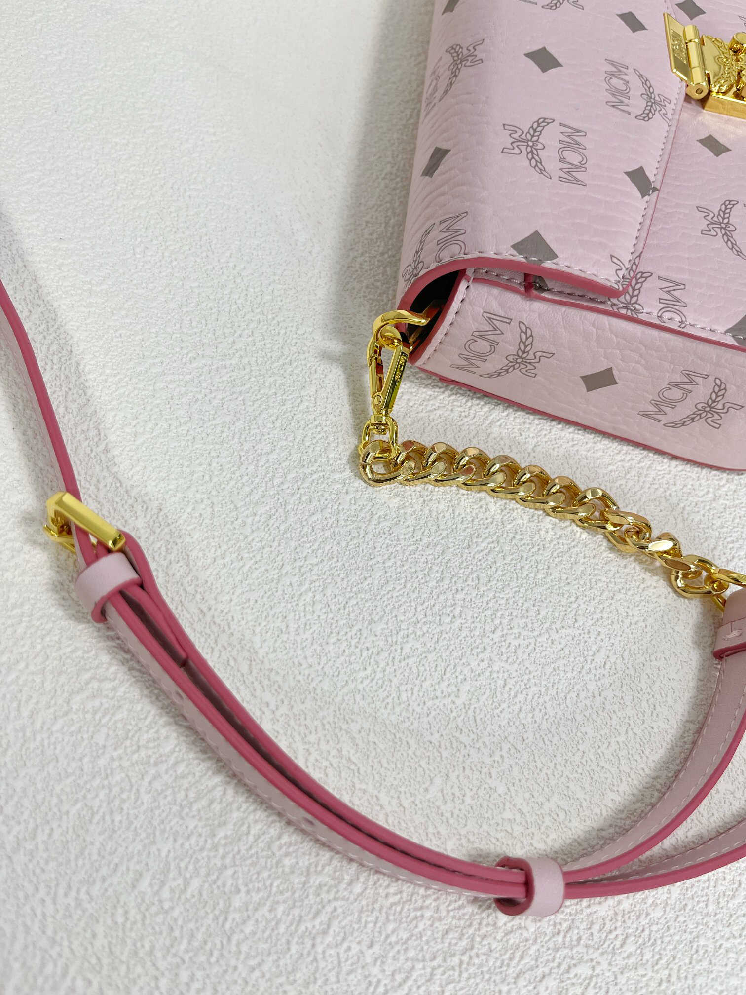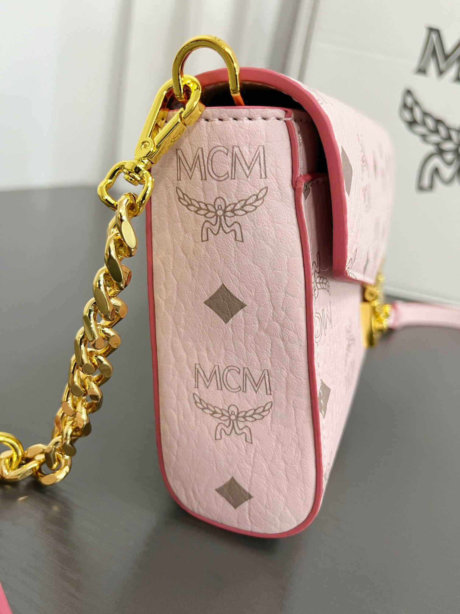 ,是M家的经典单品、搭配可拆卸链带及月桂叶锁扣,时刻演绎着MCM的品牌精神。