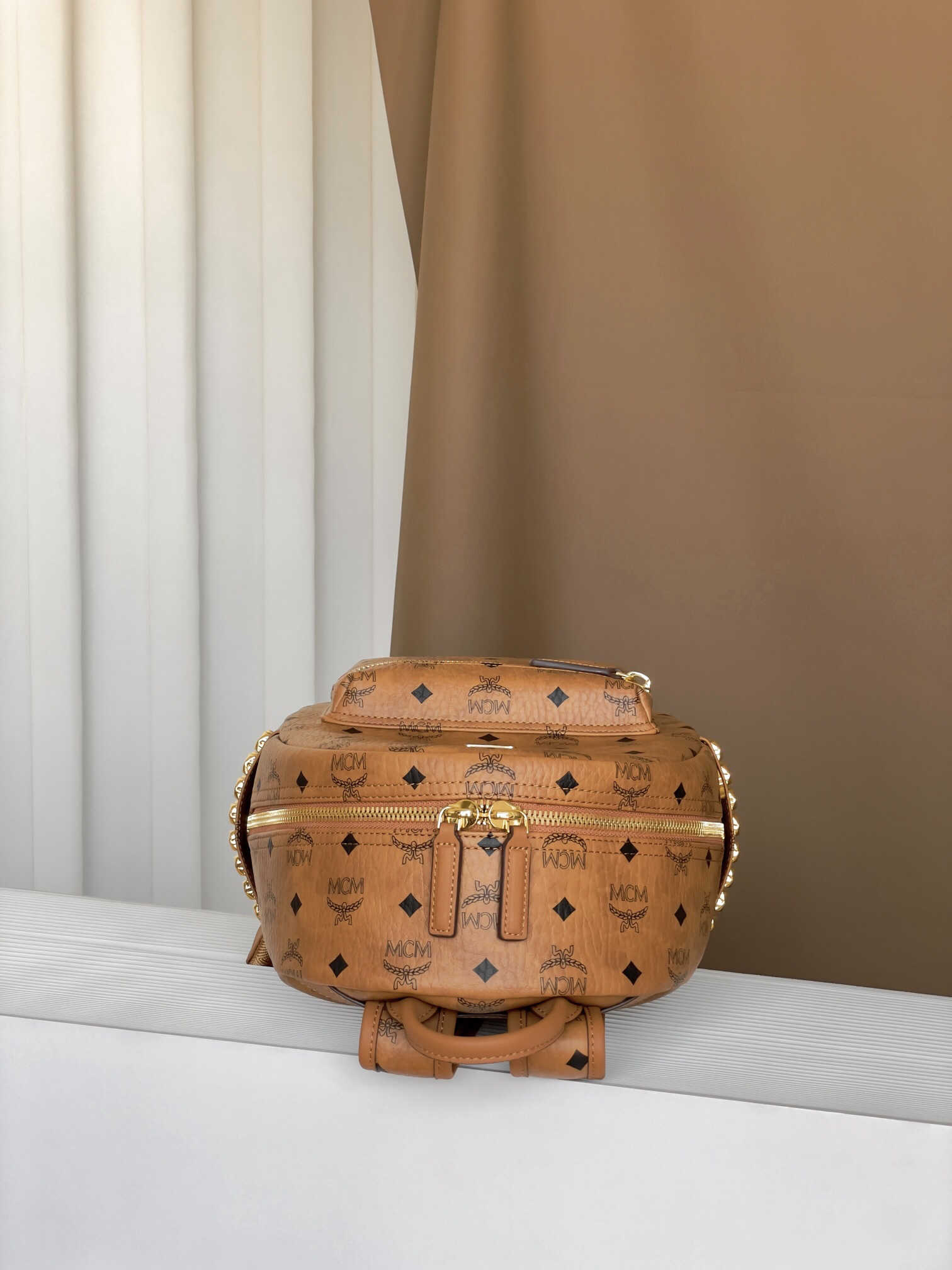 # 本季的小号Stark双肩是MCM的重新演绎 单品采用我们标志性的Visetos涂层帆布制成 采用奢华的人造皮革衬里 结构化设计拥有宽敞的内部空间和金字塔形铆钉饰边 为您的造型增添前卫风格。