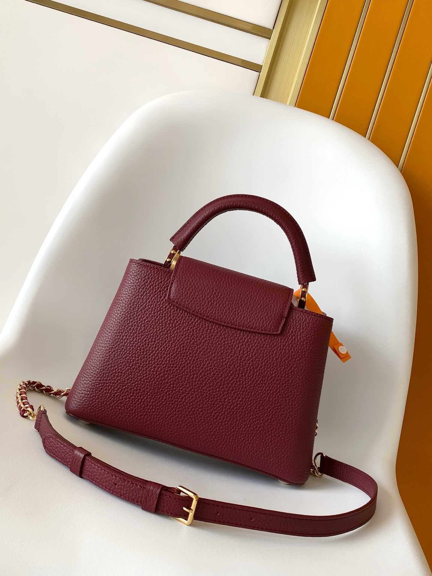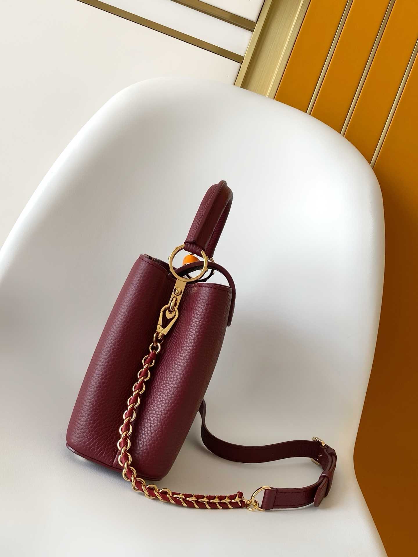 标识的立体观感,为柔美设计注入夺目光彩。全粒面 Taurillon 皮革塑造玲珑构型,可容纳智能手机、短款钱夹和其他随行小物。21.0 x