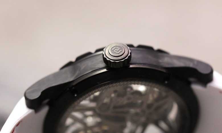 碳纤维是一种高科技材料,重量只有铝的一半,强韧度却是其三倍!v4版表壳整个碳纤维纹路更加清晰精致,不仅拥有轻盈舒适的佩戴体验,特殊的暗黑花纹质感更是炫酷十足。