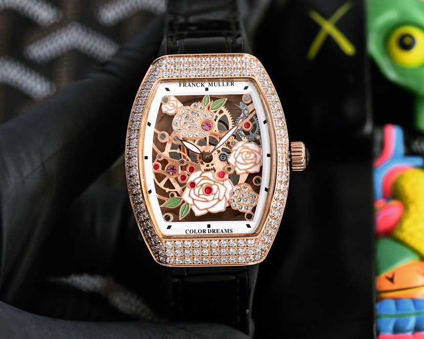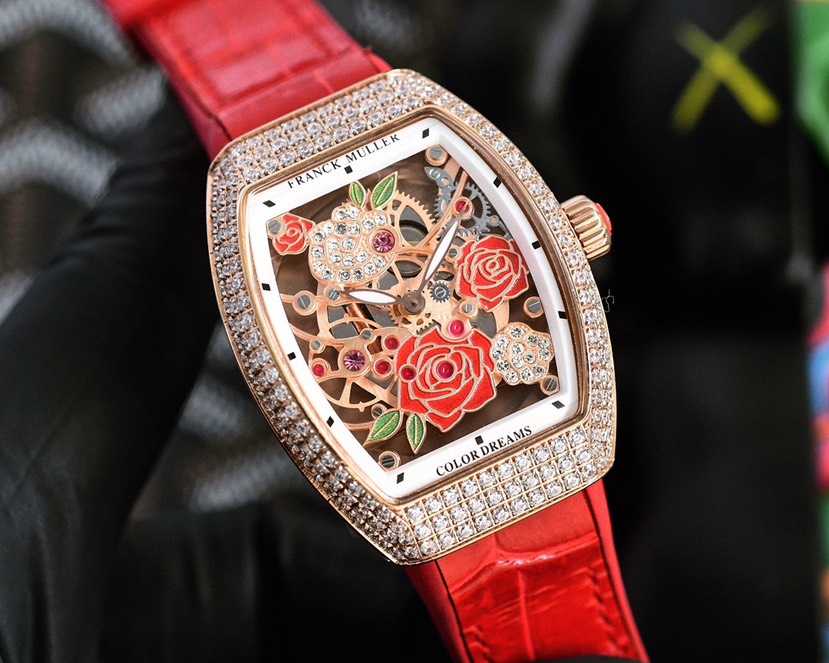 手绘玫瑰花洋溢自然气息,于腕表间恣意绽放