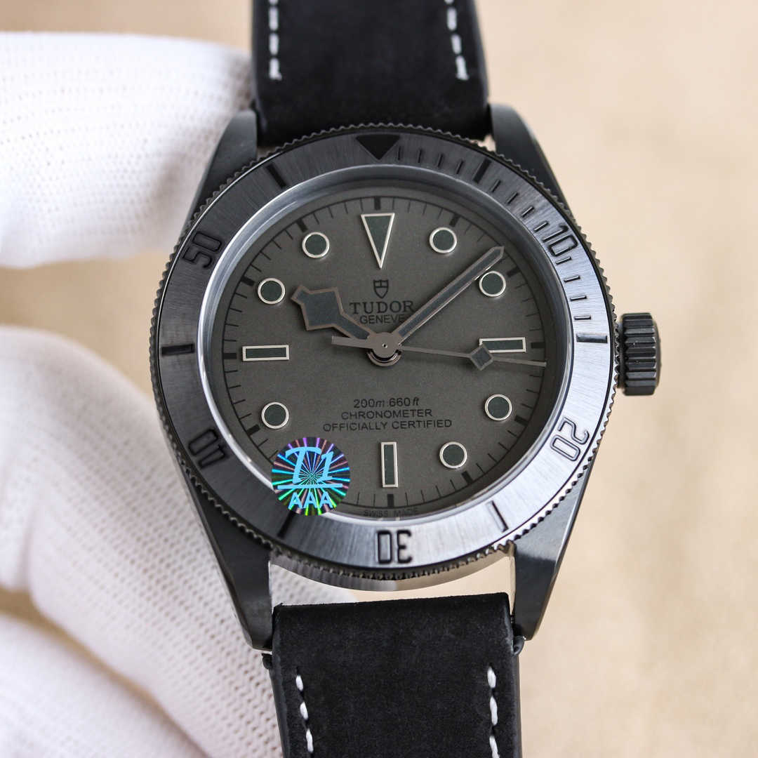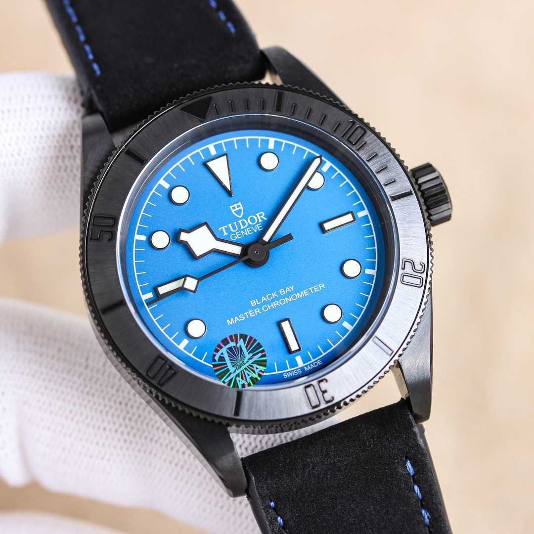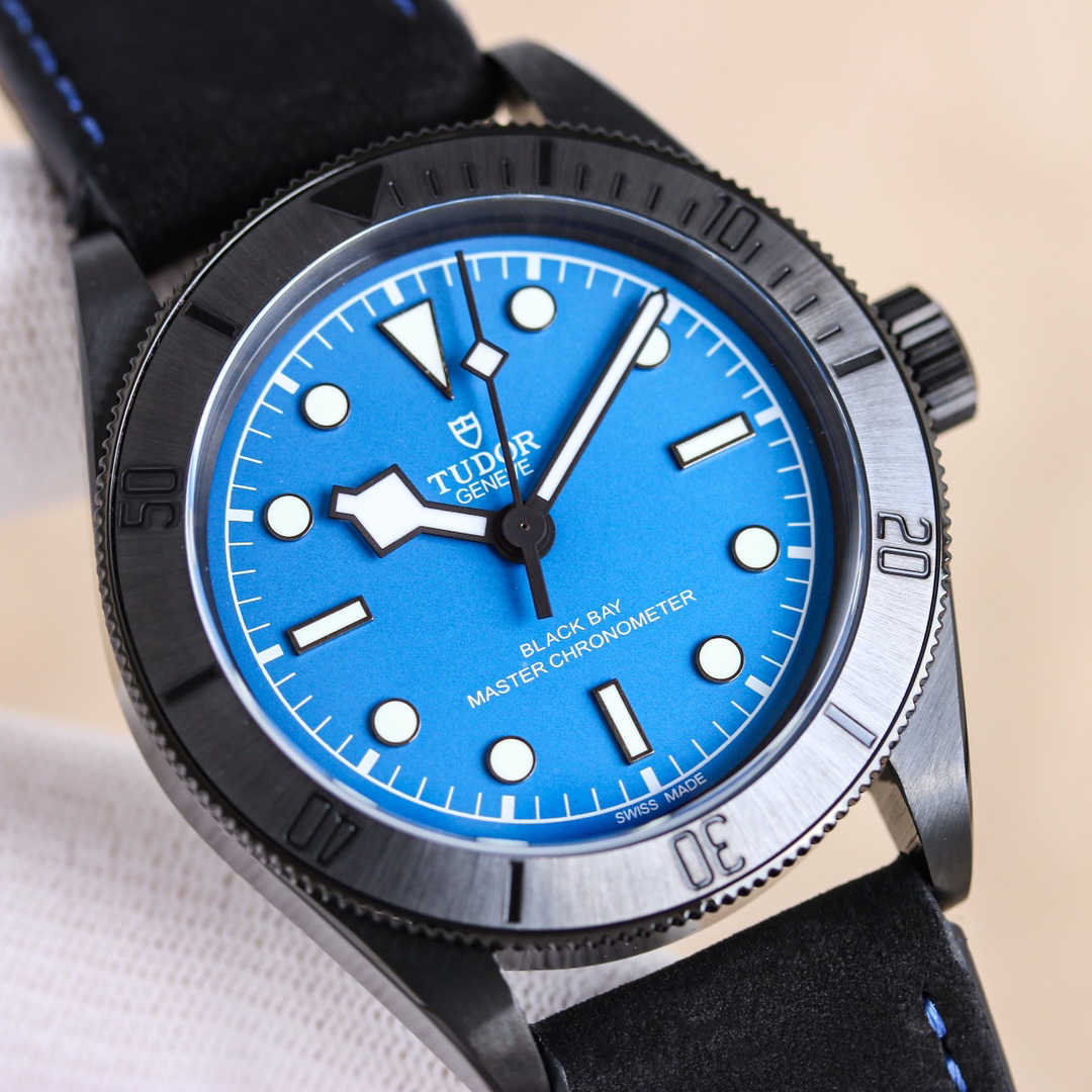 **黑  蓝表盘,简约大气,搭配夜光指针和时标,无论白天黑夜,时间清晰易读。标志性雪花指针,传承帝舵经典设计,在黑色背景下更显凌厉锋芒。