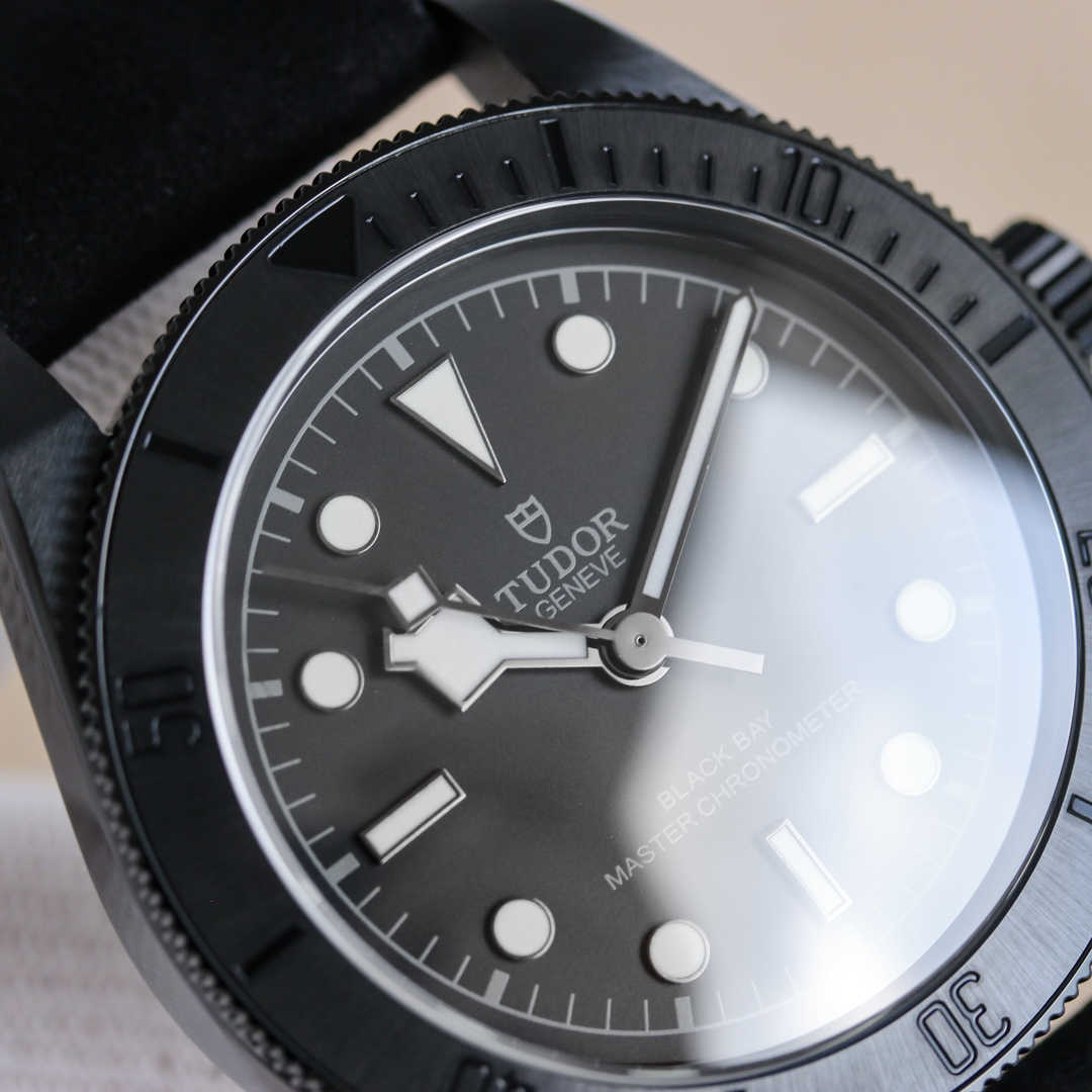 **哑光黑色陶瓷表圈, 历经高温锻造,坚硬耐磨,低调中彰显不凡品味。一体成型中层表壳,线条流畅,坚固可靠,彰显帝陀一贯的精湛工艺。
