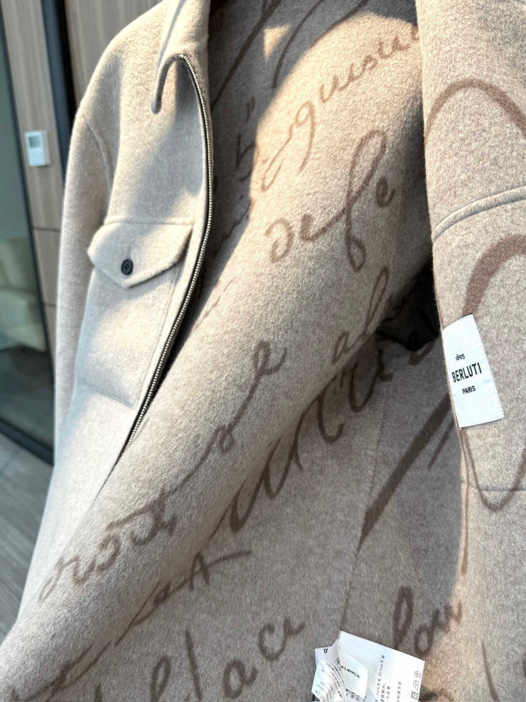 Berluti 这款羊毛羊绒双面呢,手感更细腻、重量更轻盈、垂感更自然;而市面普通版大多厚重粗糙、纤维粗,缺乏这种“轻奢与实用兼顾”的高级质感