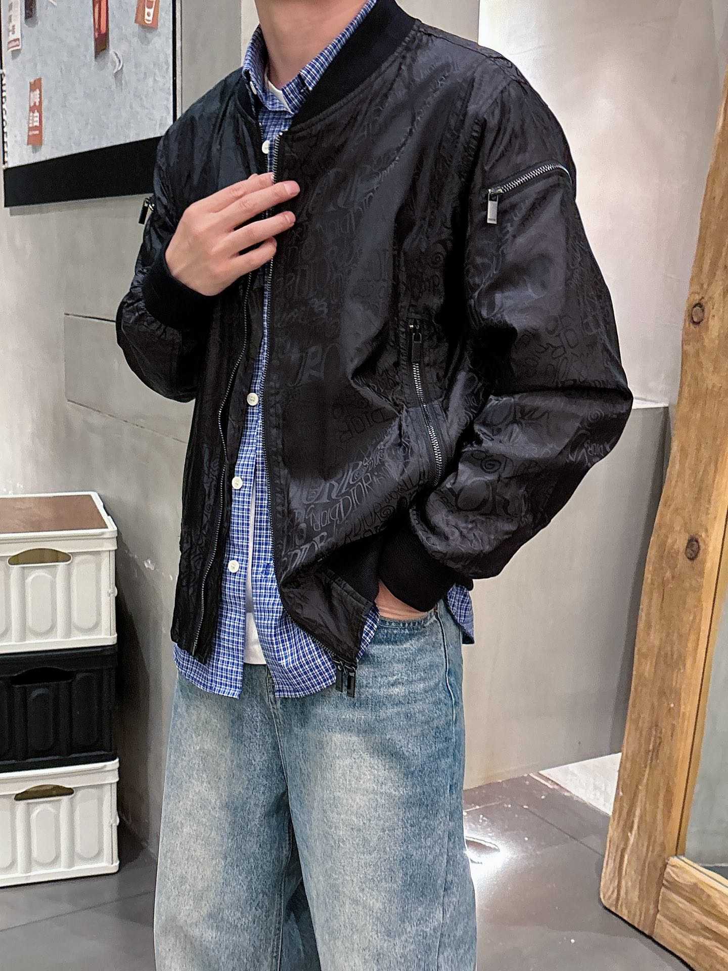 经典的棒球领夹克造型搭配悬浮感的科技立显简约大气上档次.客供定织型的聚酰胺纤维材质,质感非常特殊.属于最新的科技型面料.区别一般的厚质尼龙.全副的Oblique科技型提花创艺真心帅气养眼,明暗交织的光泽感犹如镭射感,轻松的呈现高级质感及工艺档次,叫板市面的通货.棒球领搭配双向拉链紧固件搭配镌刻标志的拉链头.标志性的橡胶毛毡徽章缝制…诸多细节感体验….