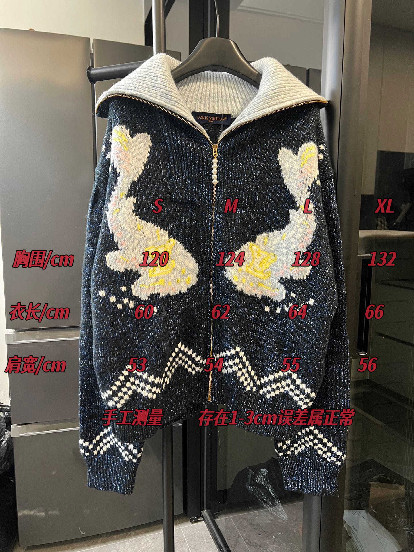 高仿鞋子 顶级手表 真皮大衣 男包包 男上衣 女装 女包包 奢侈品 大牌皮带 外套羽绒服 LV锦鲤拼纱羊毛针织拉链翻领外套( 2025-11-26 15:51:26 LOUIS VUITTONNigo 联名藏青)30%绵羊毛 70%精梳棉 多色定染 ,织片为16针STOLL进口机,织片时间,16针较细纱线8色同时织,加上多种组织提花,增加了织机难度,导致次品多,缝盘22针缝合,绣花需要二次埋夹,领、衫脚、袖口都需要挑口,共5个,绣花加了热容胶,需烫胶,前面织片漏针已经查补过一次,后整还有少许漏针,需再次查补整件衣服的每一道工序都比较慢费时间 认准版本。Size:s m l XL详细尺码可查图9 锦鲤拼图教程 锦鲤拼拼怎么样 锦鲤拼接纹身 pel锦鲤 leixin 27人围观