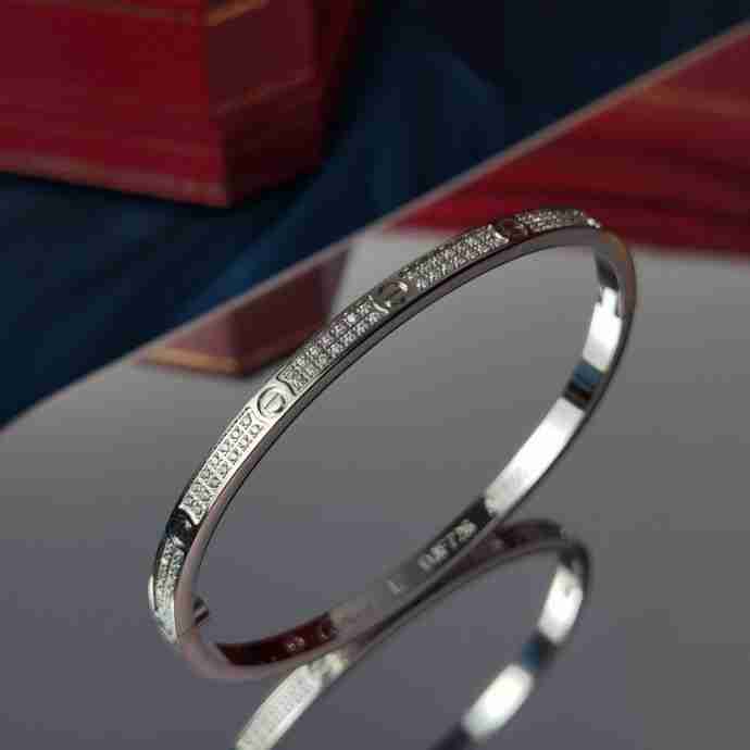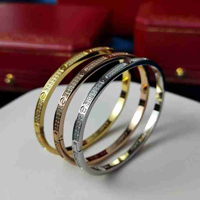 地亚官网最新发布 火爆窄版LOVE精雕CNV满天星手镯 电镀18k玫瑰金白金 镶嵌仿真高碳钻 高端定制 满钻款螺丝钉手镯