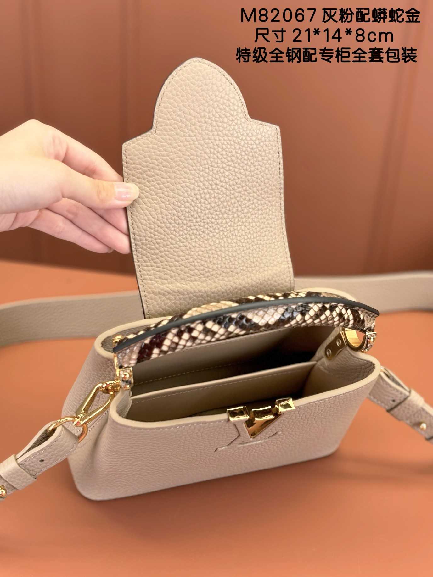 高仿鞋子 顶级手表 真皮大衣 男包包 男上衣 女装 女包包 奢侈品 大牌皮带 外套羽绒服 LV Capucines 迷你 灰粉配蟒蛇金 型号:M82067 2025-12-17 16:17:44 【特级MB新版芯片原厂皮】材料:A级全钢五金,进口原厂面料包装:全套原厂免税MB包装尺寸:21x 14 x 8cm 迷你lv包 capucines lv mini lv迷你版 lv迷你包包细节图 leixin 17人围观