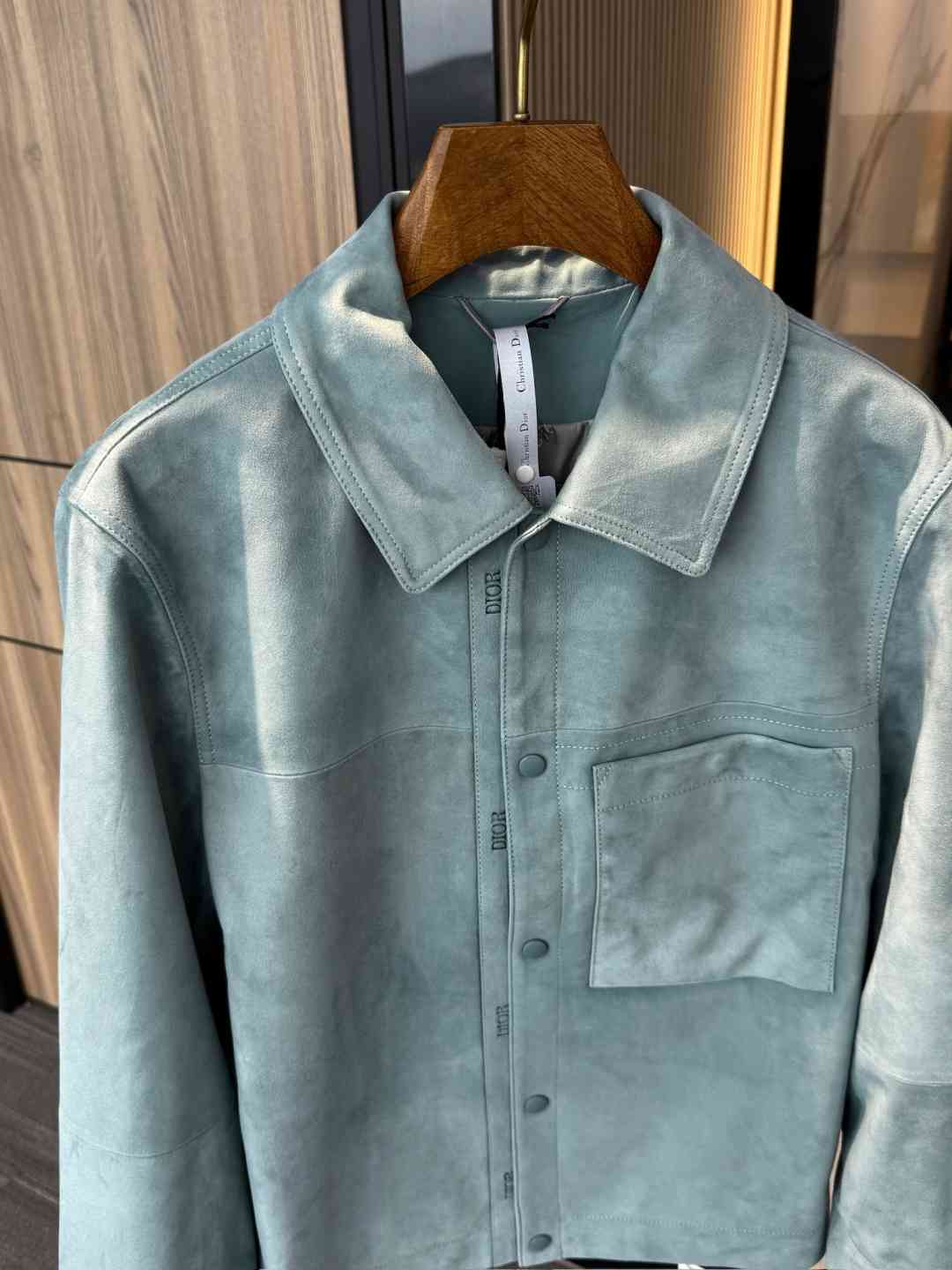 这款是衣橱经典单品。采用雾蓝色绒面羊皮革精心制作,按扣开合处饰以 D R凹印标志,正面饰以贴袋。可与四季的各式休闲单品搭配,打造更加精致的造型 。 迪奥 凹印标志|正面按扣开合 |胸前贴袋