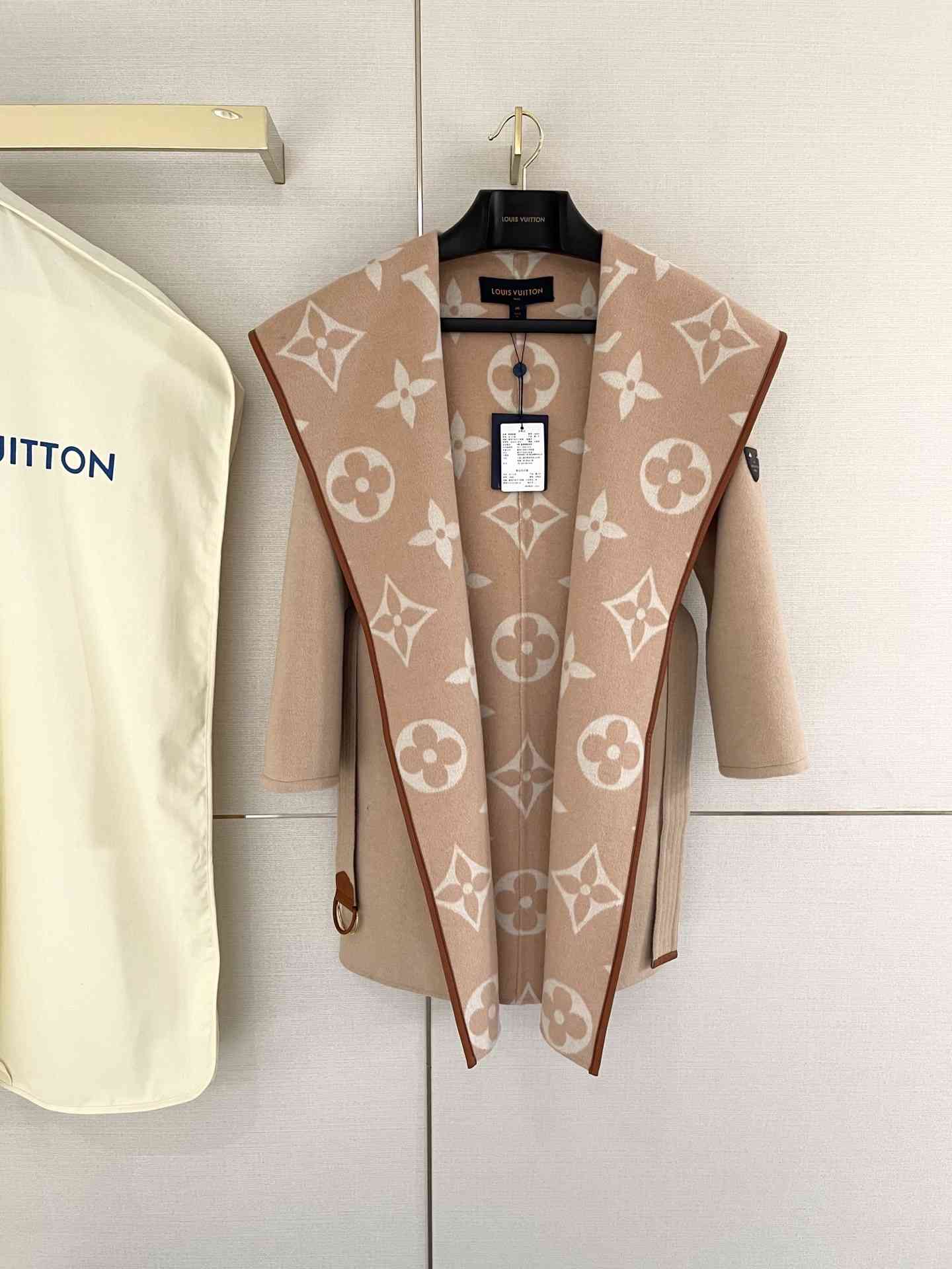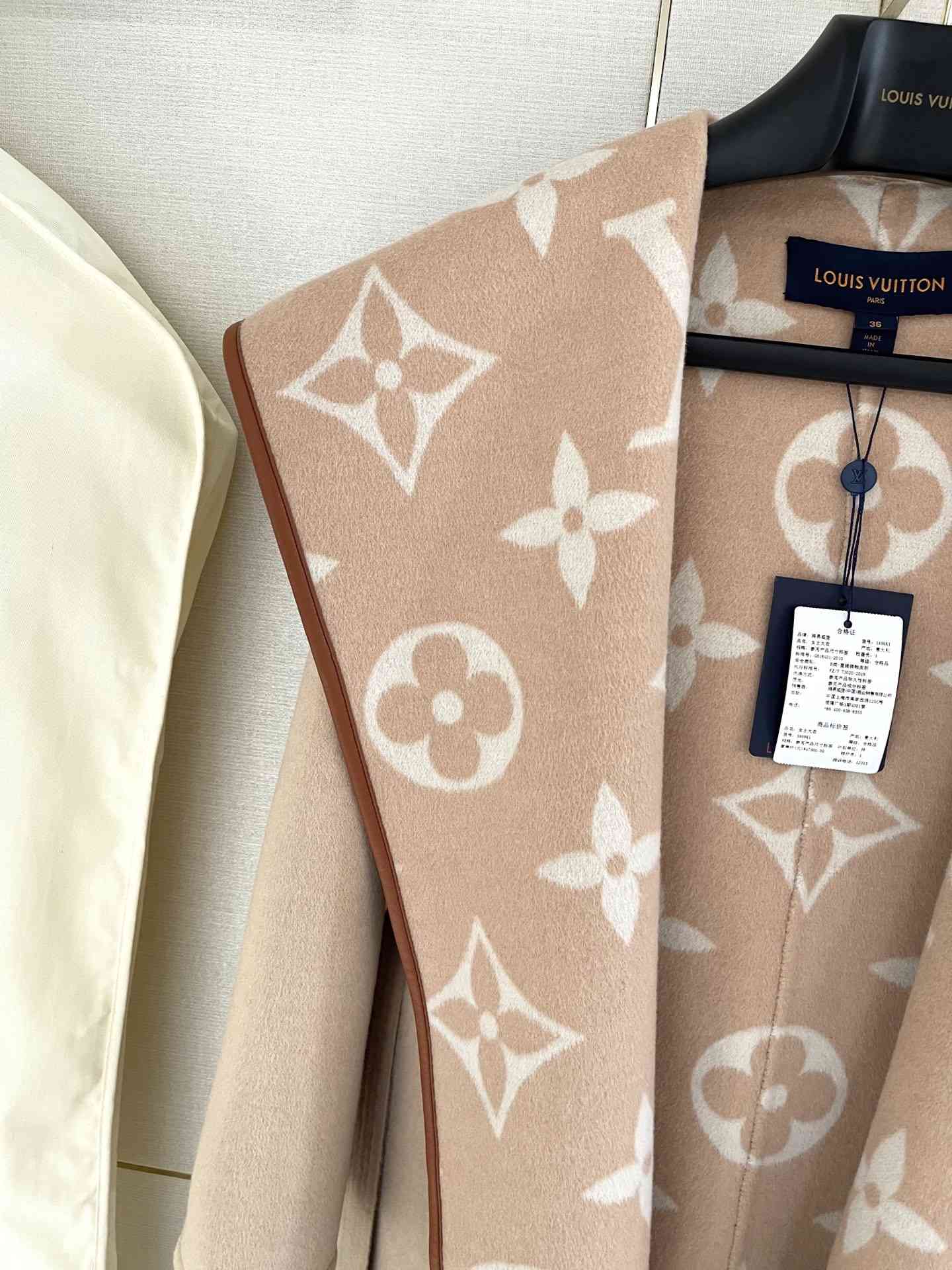 ,非常高级的卡其色,不挑肤色,高级感爆棚,国内已经没有了,衣身采用99%羊毛➕1%桑蚕丝。手感细腻,贴合,亲肤,柔软,羊毛质感超好,内里是驴家提花打造的标志性图案,于外层的面料针织在一起!全手工缝制,稍有一点偏差,整件报废!所以超级超级费料。比较成本摆在那里!衣身边缘全部采用牛皮包边,小细节更能体现大牌的工艺!腰带设计,纤细小蛮腰立显,整体线条美更加突出,上身效果绝对是倾国倾城!