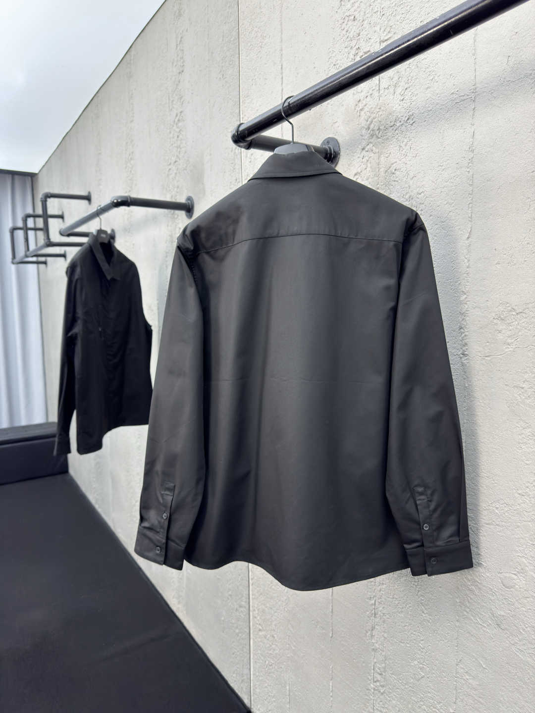 工艺说明:选用黑色华达呢面料,其紧密的纺织构造,使它具有良好的抗皱性,耐磨性和垂坠感。由于羊毛成分的加持使其拥有保暖性和透气性。现代版型修身剪裁和隐藏式拉链开合增添了低调的精致感。袋口同样也是隐藏式拉链开合,袋口首尾均运用口袋套结工艺加固。袋体边缘处紧密的缝线使其牢固和美观。左右设有侧插袋,袋口只做了0.5公分的包边,既保留了整体线条的流畅性又不失实用性。整体走线平直细腻,面料舒适柔软,颜色一致无色差