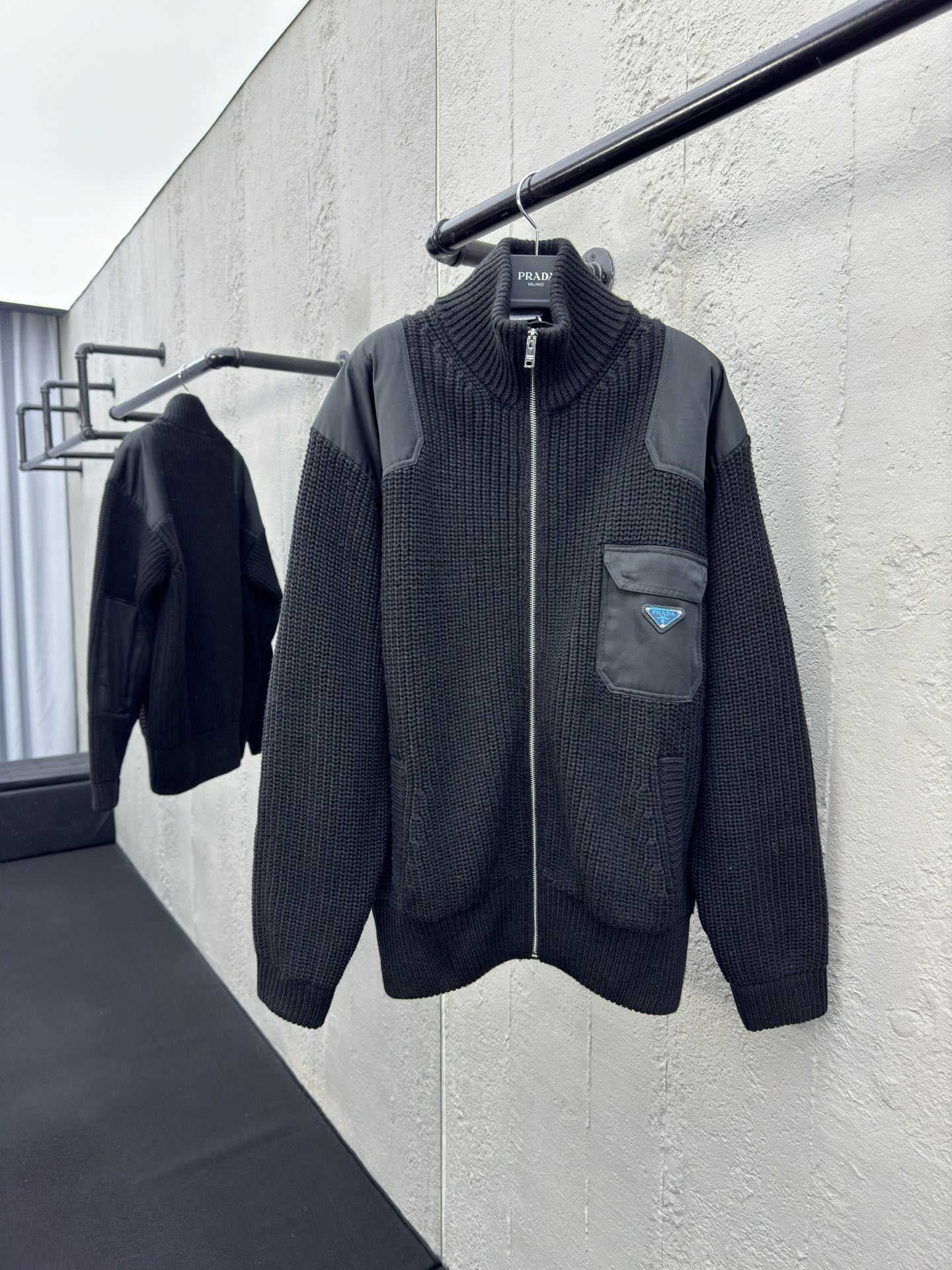 普拉达三角标针织毛衣外套