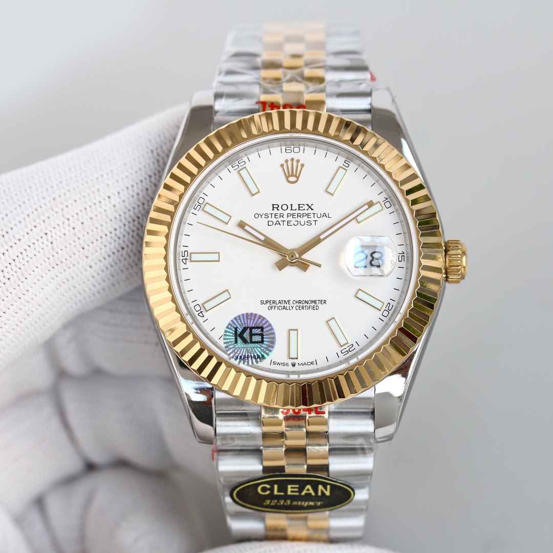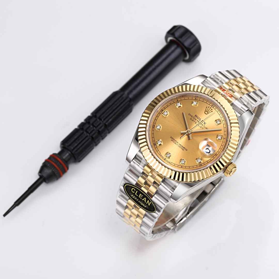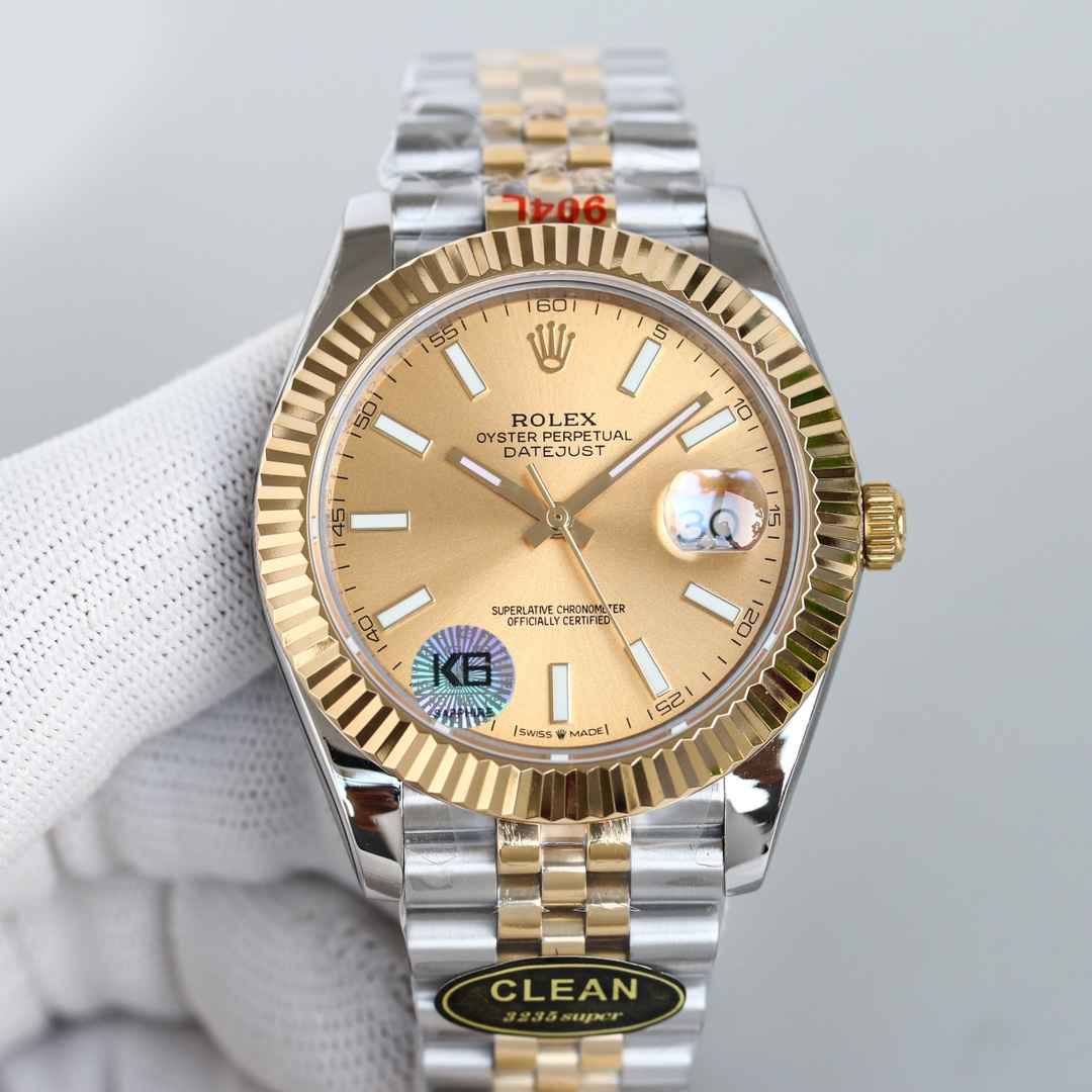 C厂 新品劳力士41mm日志型系列,:搭载2836-2机械机芯,机芯及其稳定:整表904L精钢 搭配clean厂钢带 :表盘颜色无限接近原装:全市场唯一日历字体对版 后续1-31号挨个字体真假对比 :唯一做到指针夜光字钉夜光 做到同色 因为都是第三方工厂加工+自购瑞士 c1+c3夜光粉 :字钉皇冠唛头钉 全白金电镀处理 虽然clean的款式不多 但是几乎款款均为精品 彻底解决世面上的大部分日志痛点!