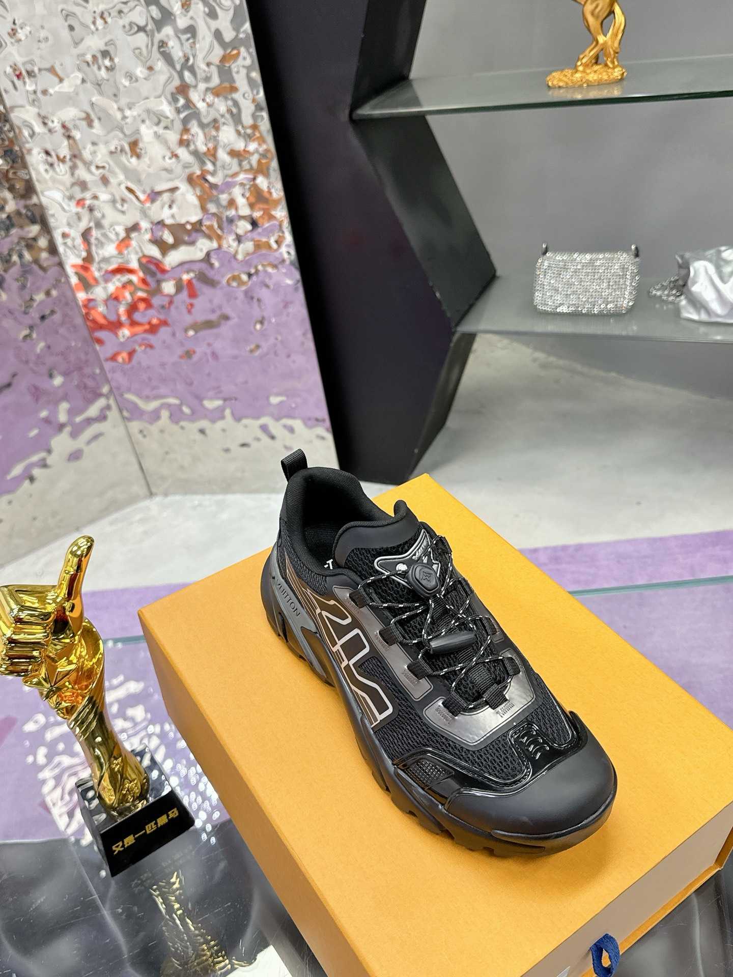 原版购入开发 做货 本款 Runner Tatic 运动鞋融合网格面料和饰带等科技材质,演绎传统登山鞋的灵感启发。 字母抒写于一侧,快速系带系统的套索扣点缀 Monogram 花卉和标识,轻盈耐磨的橡胶外底完善整体