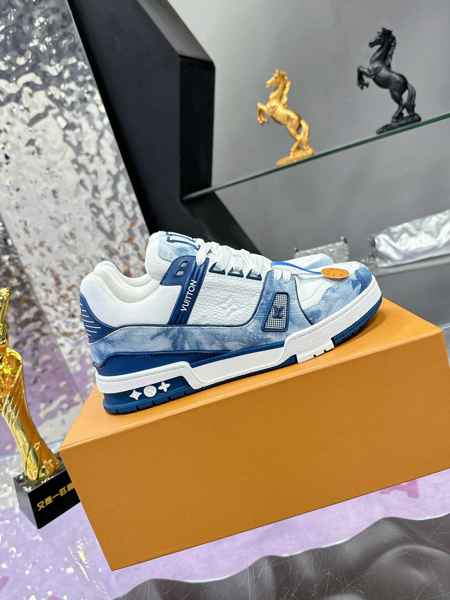 采用头层牛皮制成,进口定制专用印花牛仔布包裹,粗鞋带系带设计,侧面带 Monogram 大印花, 鞋舌及后跟”lv 54“徽章点缀,橡胶外底饰有 Monogram 花卉, 网布内里棉垫脚,舒适性一如既往的达到极致,精品传承,品质至上,值得拥有!