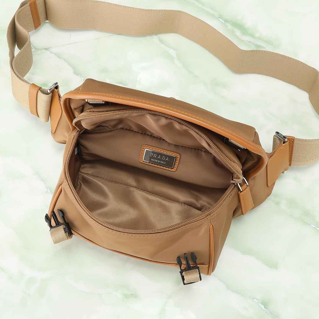 这款翻盖式单肩包采用尼龙和小牛皮皮革等标志性的P家材质制作。单肩包配有内部和外部口袋,并饰有三角形金属徽标,兼具功能性与品牌格调。上身效果非常酷😎,男女共用款🎉🎉简约大气😘赶紧入手吧🎉🎉
