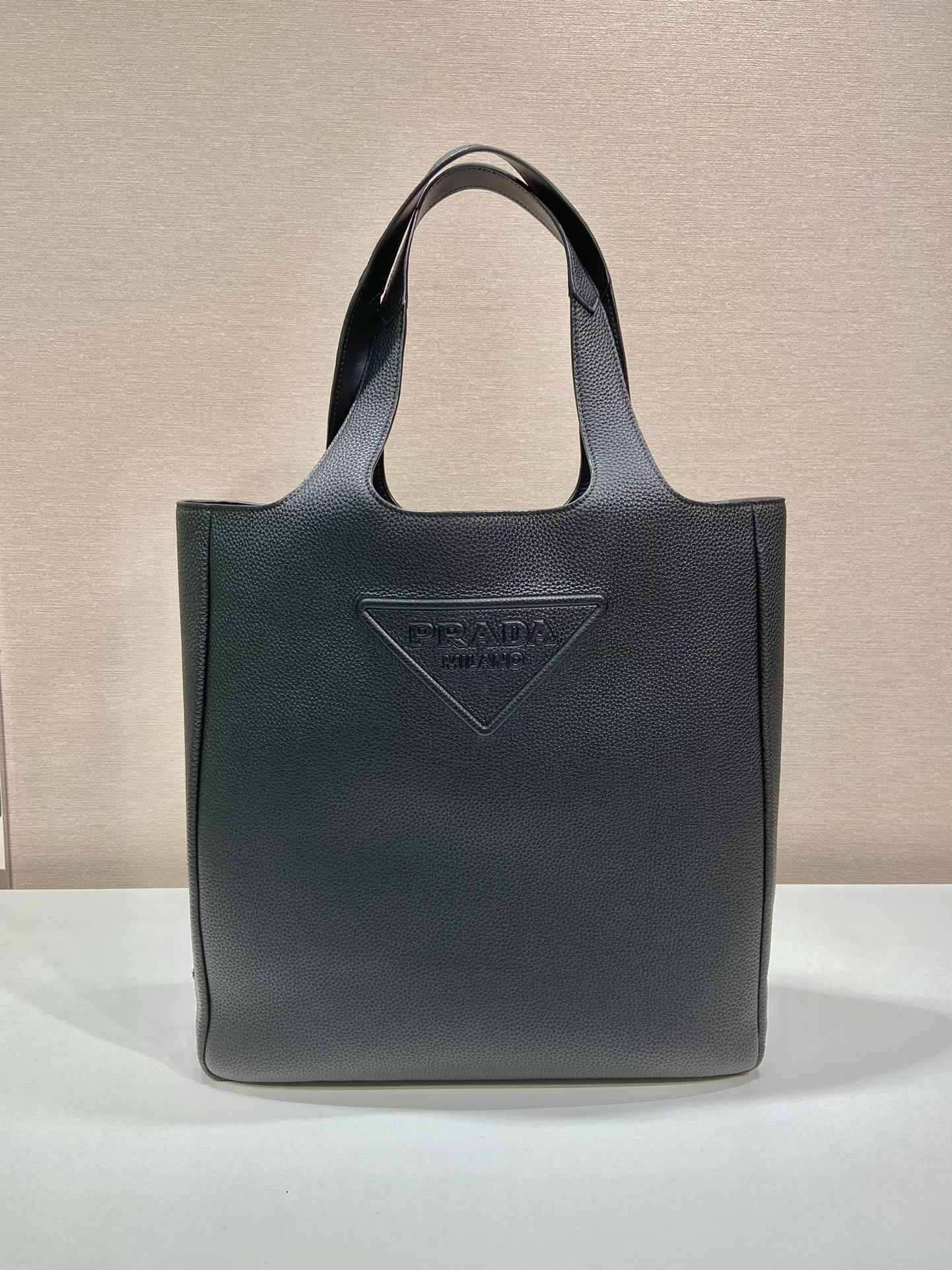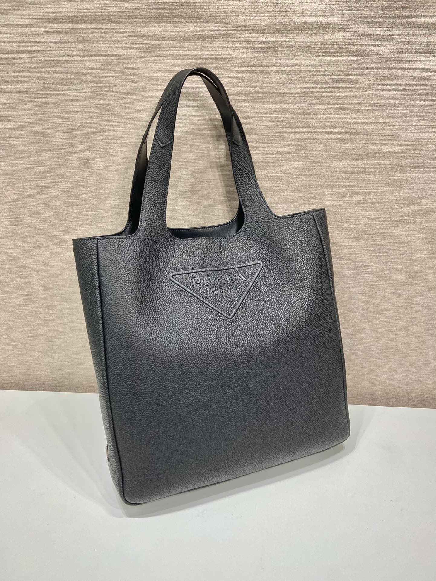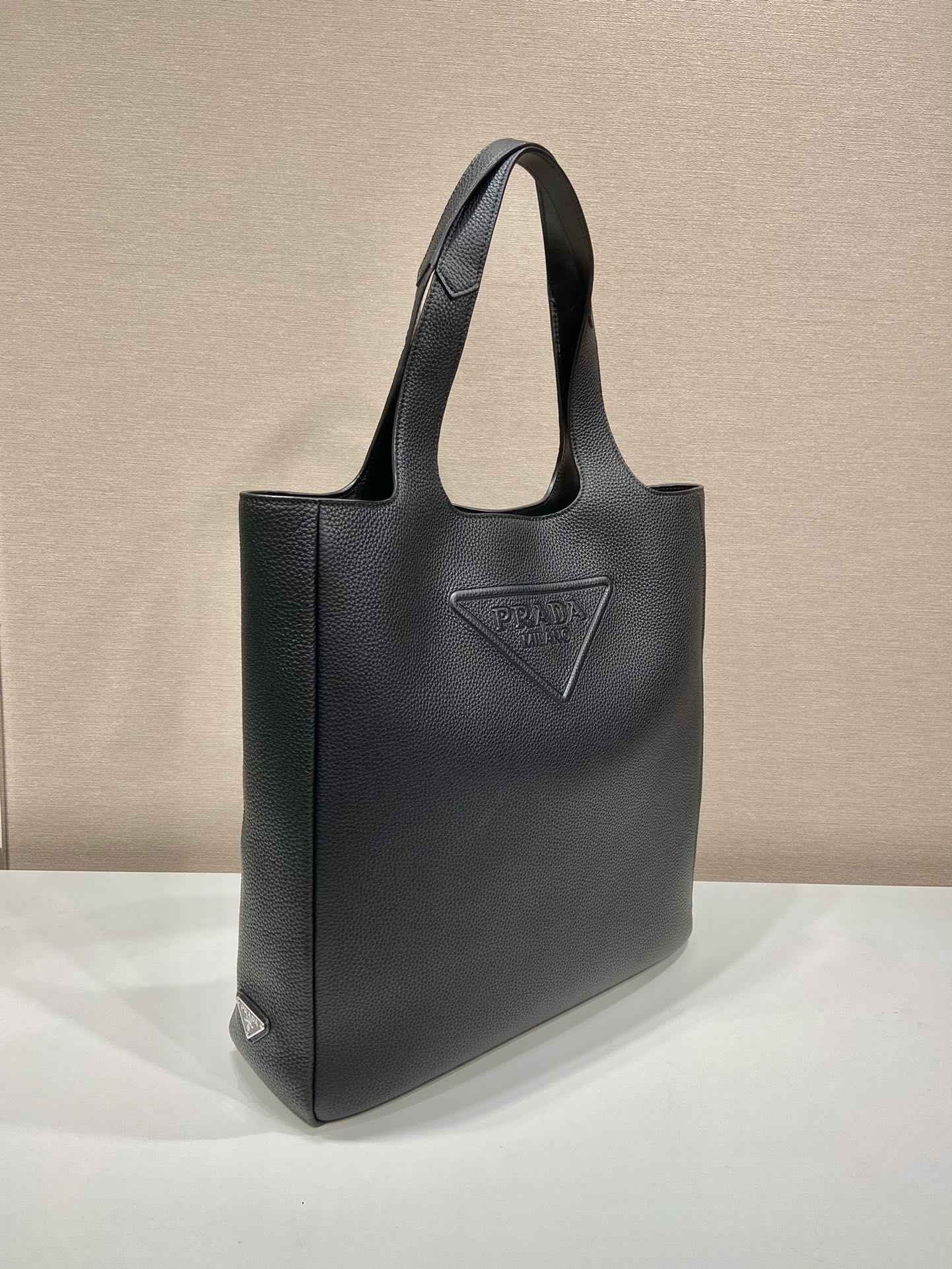 这款皮革托特包呈现纯粹的线条,诠释简约格调标志性的三角形徽标以多元方式重新诠释,巧妙点缀包身。 流露现代气息。侧面涂珐琅金属徽标彰显别具一格的特色。简约大气,潮流感十足。容量空间非常大🎉帅哥们,赶紧入手吧🎉🎉