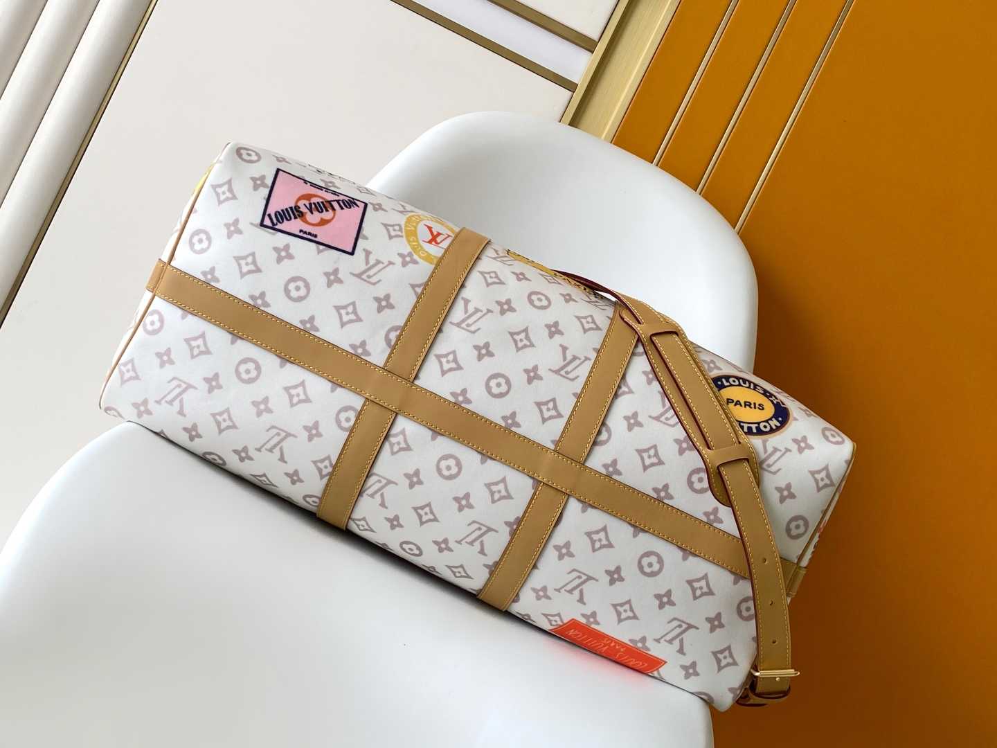 ,营造出华丽的氛围,是任何旅行者的完美选择。进一步提升复古风的魅力的嫩革修剪也很有魅力。可随机携带的行李(根据航空公司和所使用的设备而异)带有两个顶部手柄和可拆卸和可调节的肩带,可享受多种携带方式。