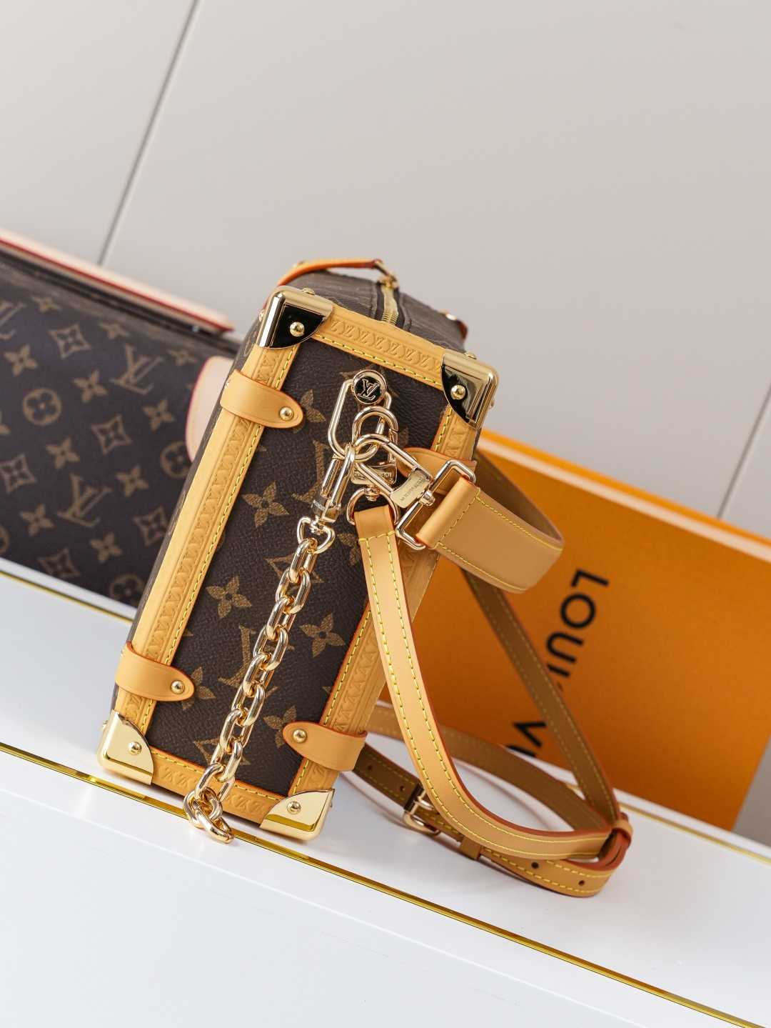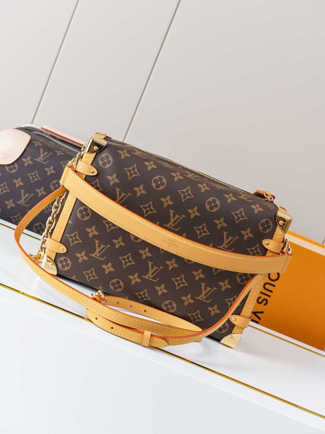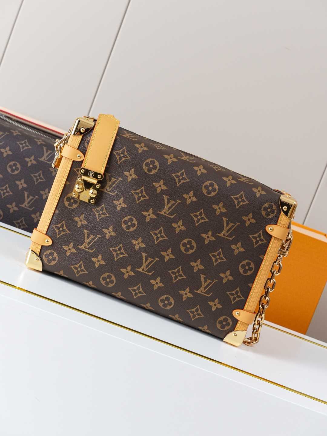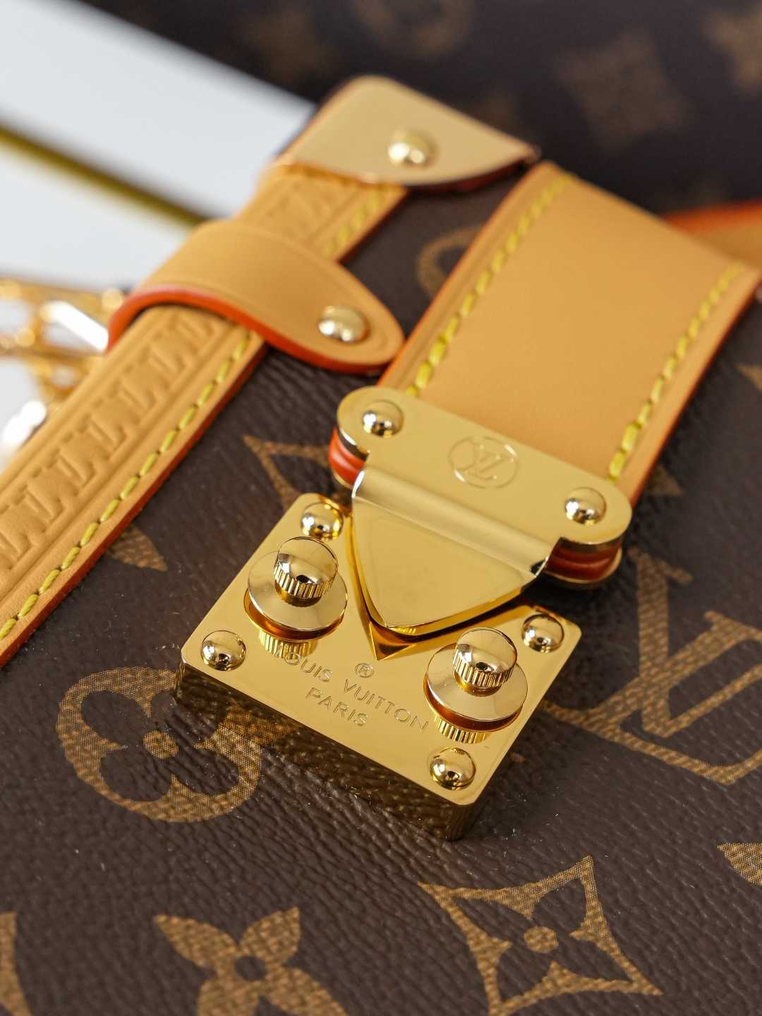 顶级原单【独家背景实拍】本款 Side Trunk 大号手袋为 Monogram 帆布勾勒撞色皮革饰边,搭配莹亮金属件和崭新加长链条,以瞩目设计存放日常所需。S-lock 锁扣和硬箱风格包角再添品牌格调。