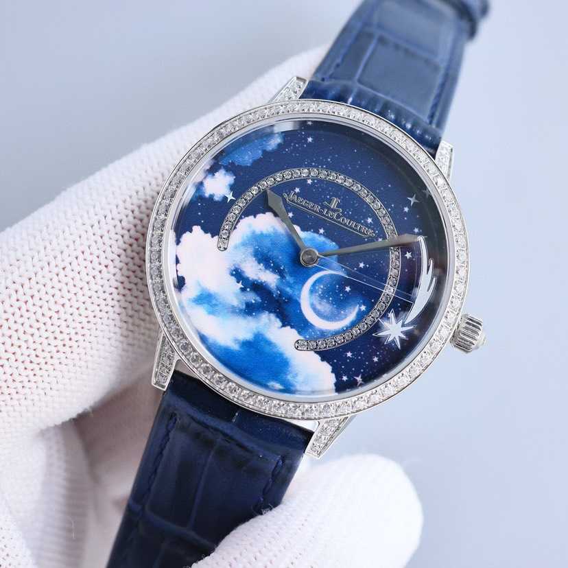 珍稀工艺款,采用先进3D技术打印繁星与弯月,再以微绘工艺在表盘上创作云朵,刻画出晴朗少云的夜空高低远近不同的层次,点睛之笔在于沿着表盘外圈划过夜空的流星,缓缓流淌,将耀眼的瞬间在腕表上再现!整表36mm搭配734一体机为流星的转动提供源源不断的动力!