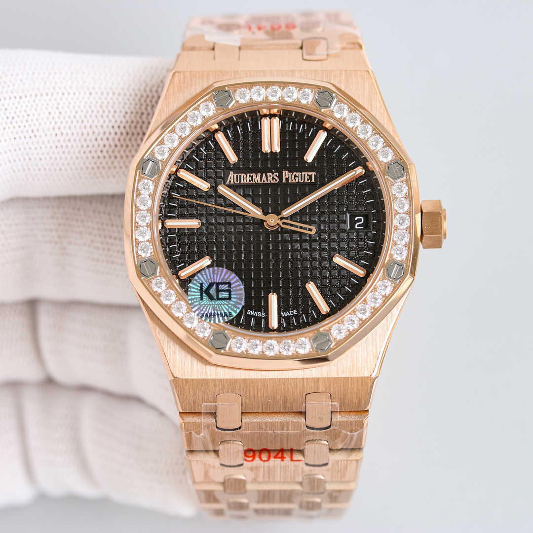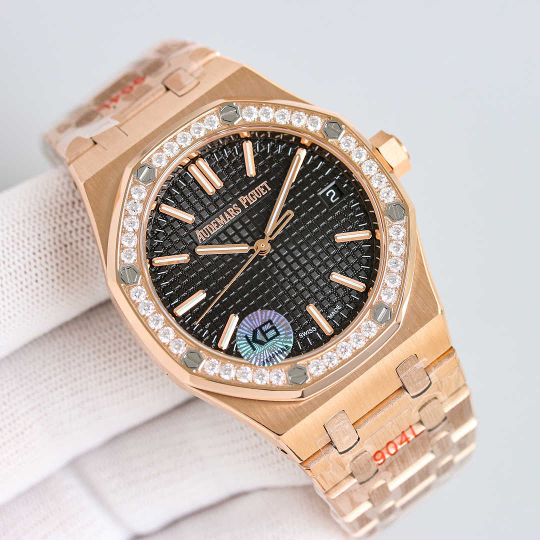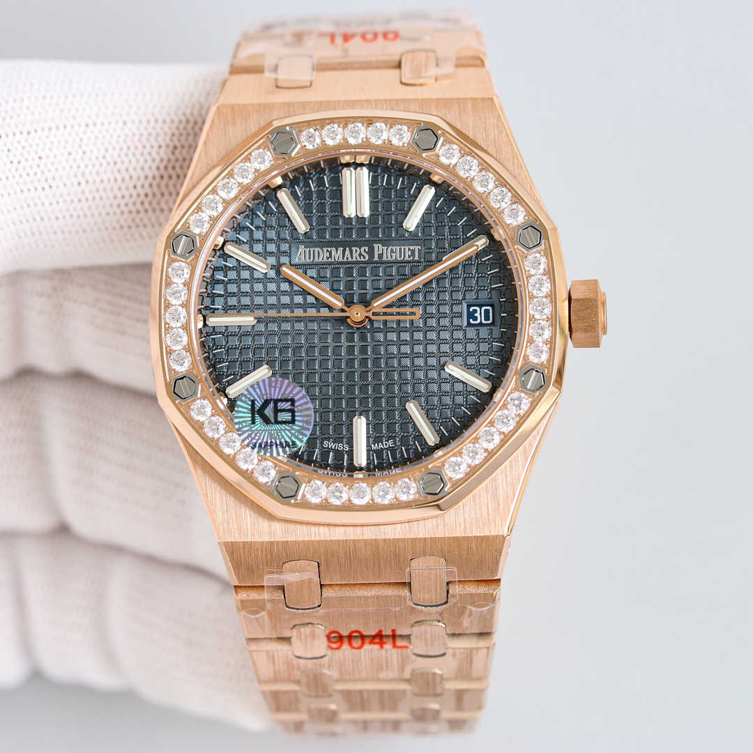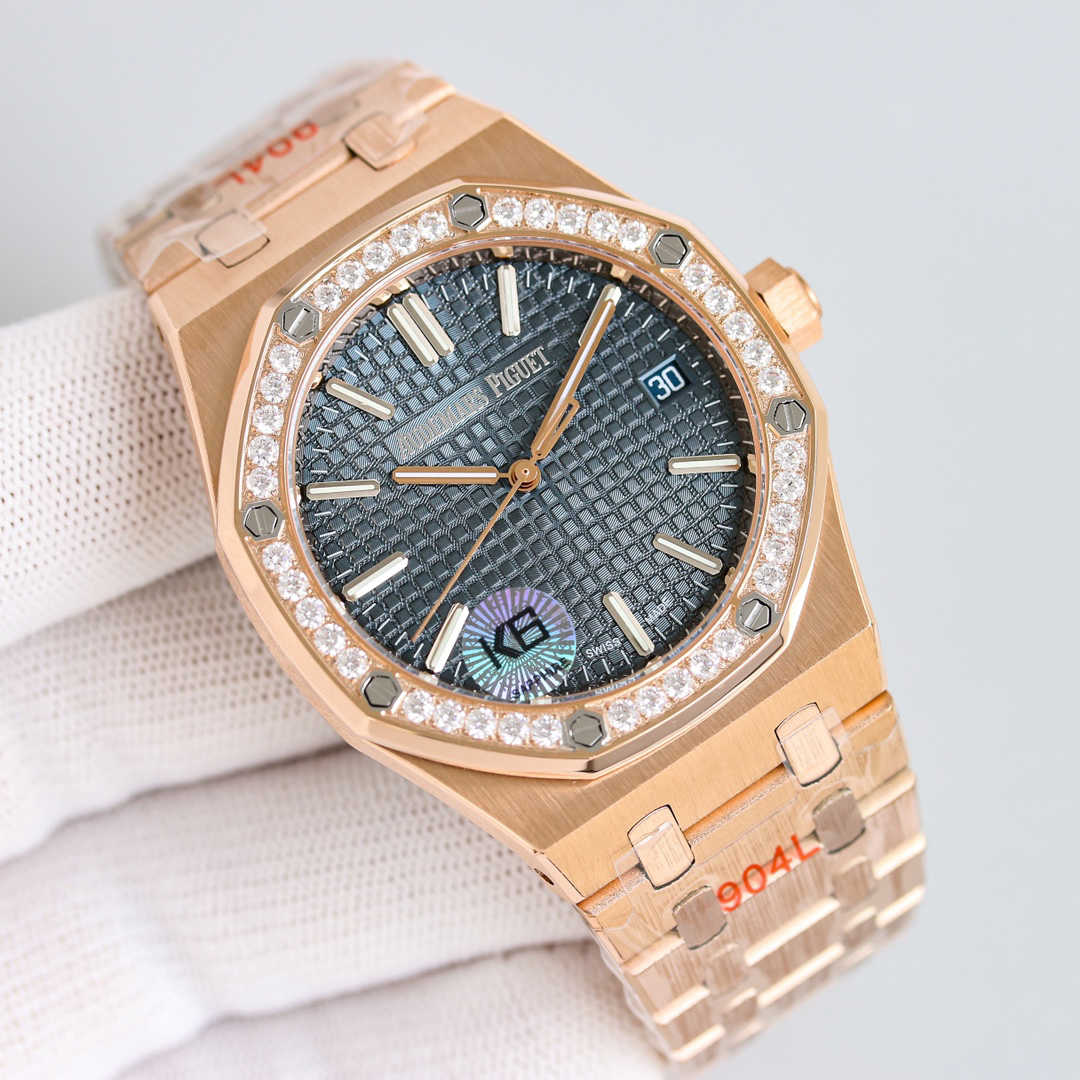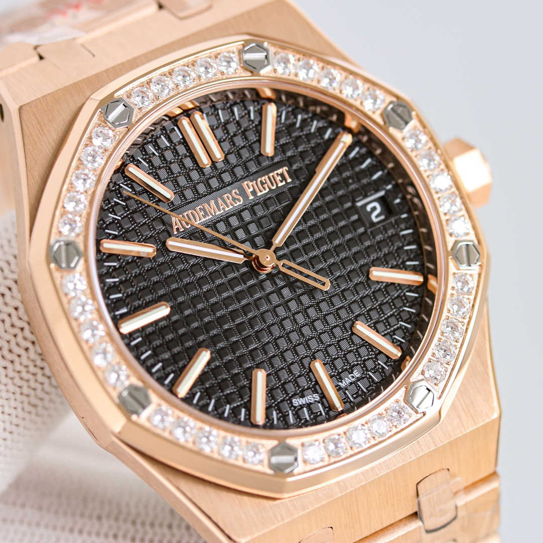 爱彼皇家橡树V3钻圈版——震撼上线:剔除机芯甲板多余部分,使之变得更加镂空——成就钢表巅峰—— 实力演绎 卫冕“钢”王!【6大精妙之处】1.拆解开模,尺寸为41X10.4毫米与一致!2.完美还原表壳的每一处细节,尽显“棱角分明 坚毅果敢”的阳刚气质。3.钢带的做工无可挑剔,比市面上任何钢带表做工均要更上一层楼,钢带头粒和表头衔接的“缓冲带”的松紧程度与一模一样。4.自动陀的与原装致敬,是市面唯一做到颜色于原装一致的版本(市面一般版本均偏红)其上的ap族徽雕刻独一无二。5.打破夹板概念,采用9015机芯改爱彼CAL.4302一体机!更稳定,更优秀,更真实。6.表盘的“饼干纹理”立体饱满,精神抖擞!绝非普通小厂一般失魂落魄。体验精妙 感受不同!