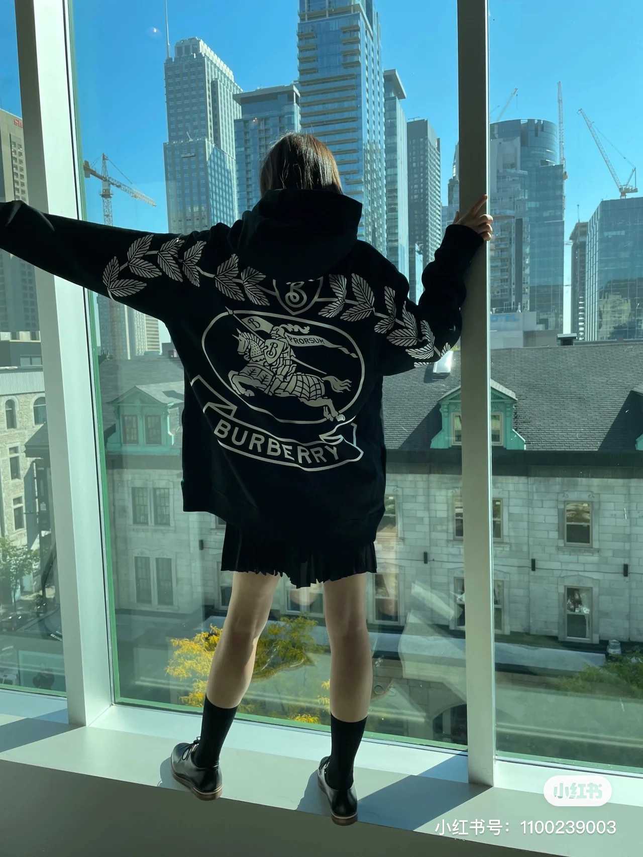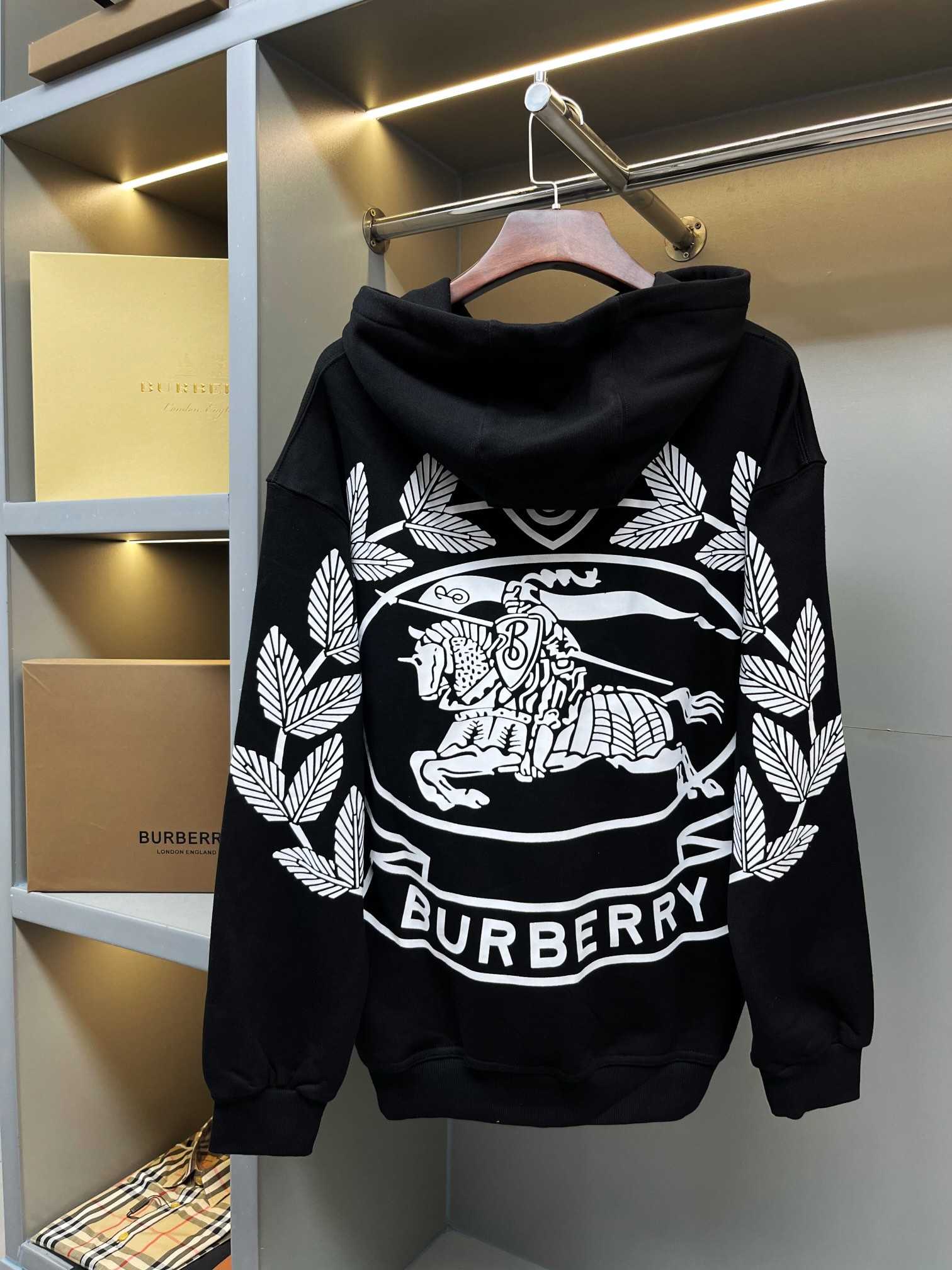 巴宝莉 战马马术骑士印花棉质连帽卫衣