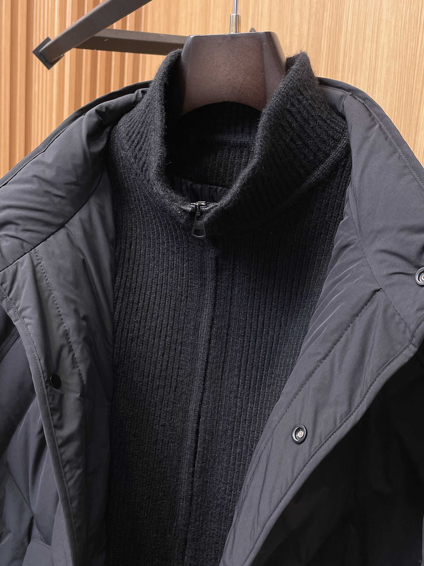 ‼️重磅推荐,贸易公司渠道臻品,高奢顶尖品鉴货,独家首发,高端品质,内里填充国标90鹅绒羽绒朵,100%市面最高品质,假两件针织设计,胸口经典原标,轻商休闲风格上身更具独特风格,进口面料里布最高标准,辅料五金全部原厂定做,无论是精致的拉链、扣子,还是巧妙的口袋设计,都体现了对品质的追求和对细节的重视,专为追求高品质的您设计。