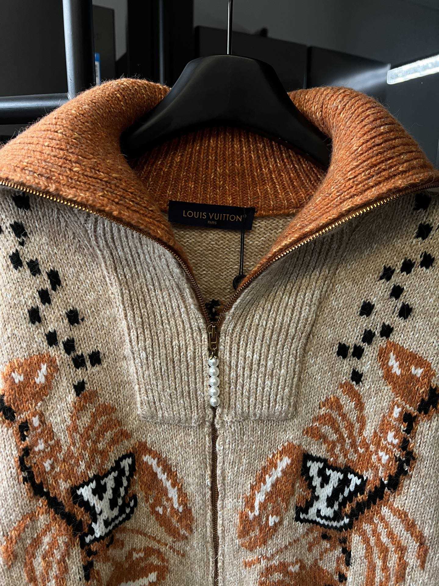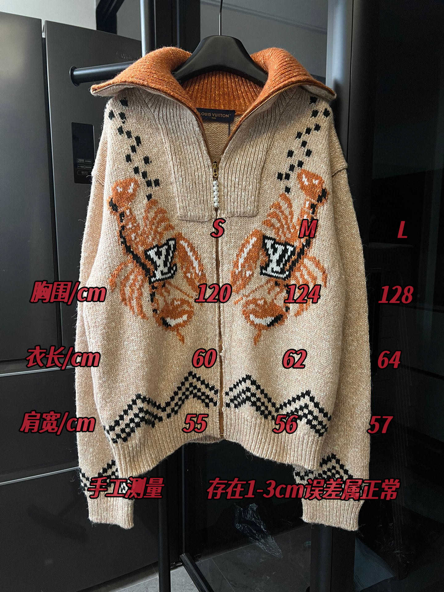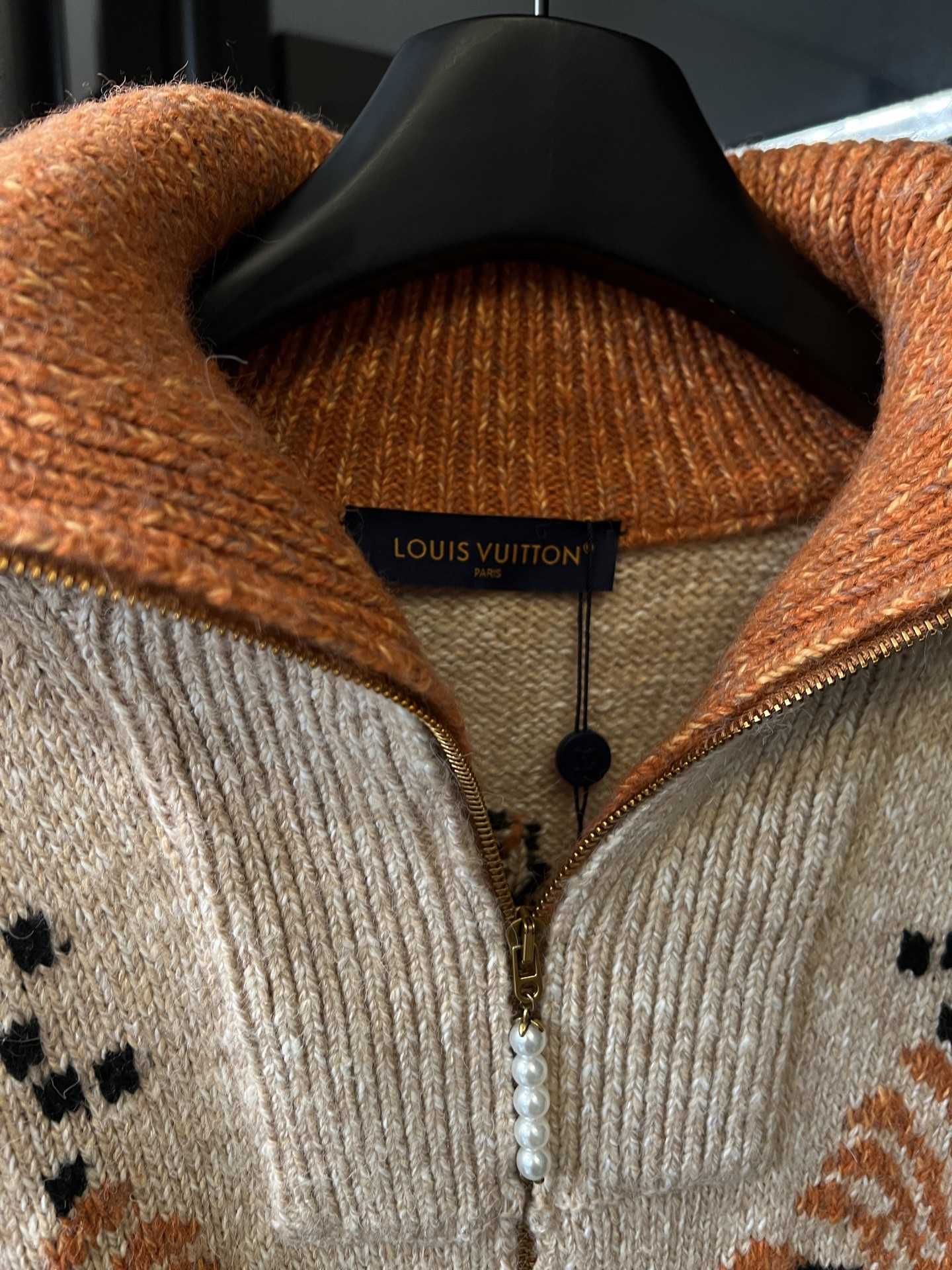 LV龙虾拼纱羊毛针织拉链翻领外套