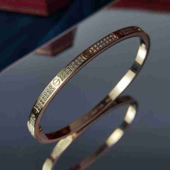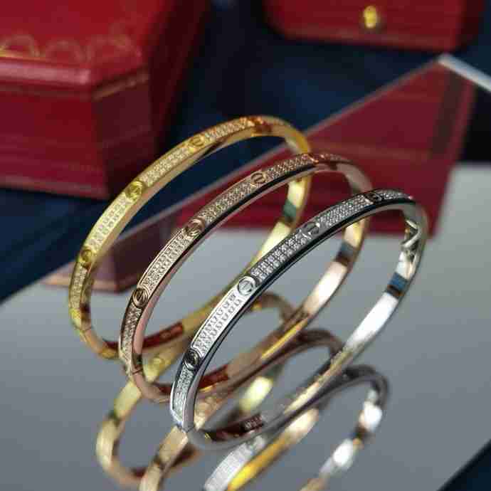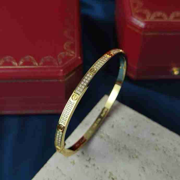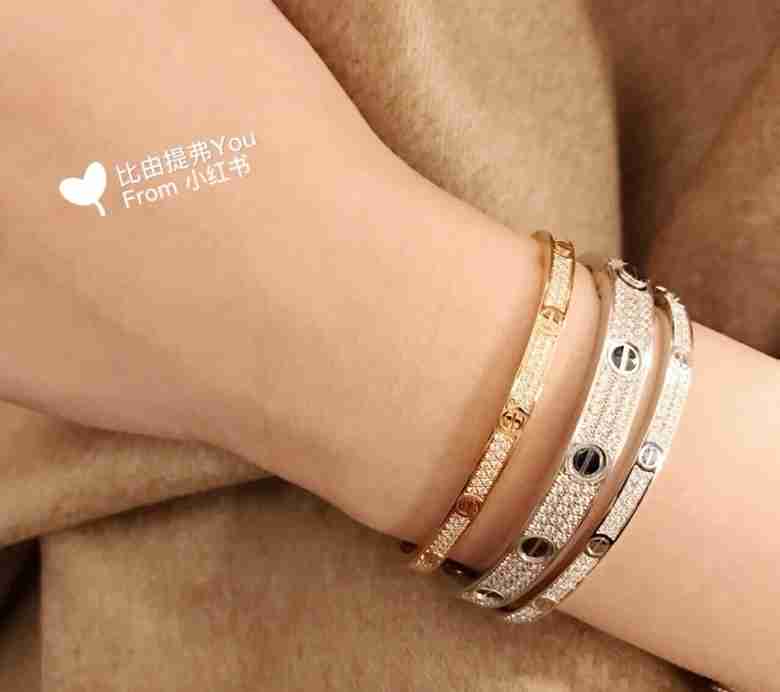 地亚官网最新发布 火爆窄版LOVE精雕CNV满天星手镯 电镀18k玫瑰金白金 镶嵌仿真高碳钻 高端定制 满钻款螺丝钉手镯