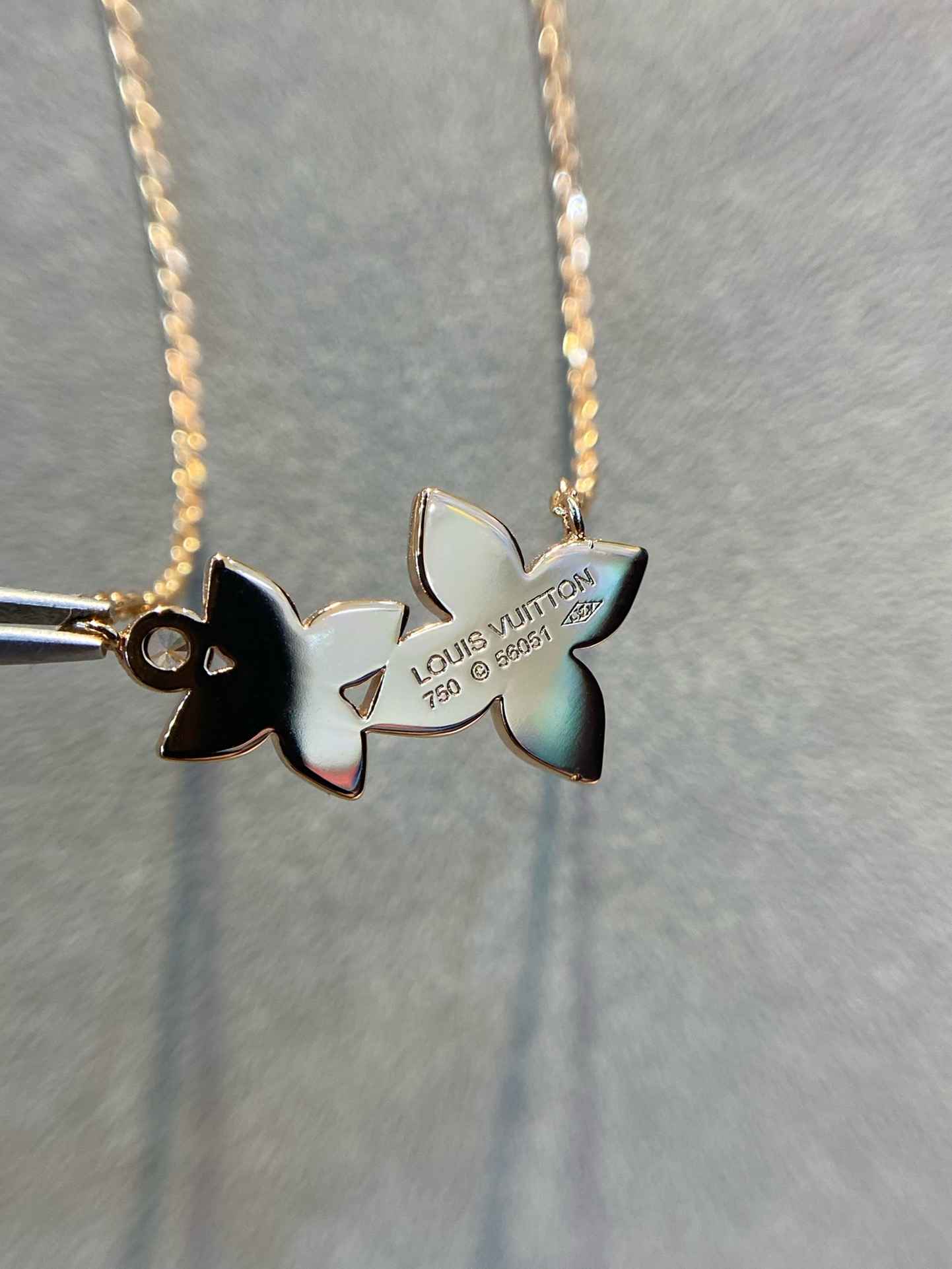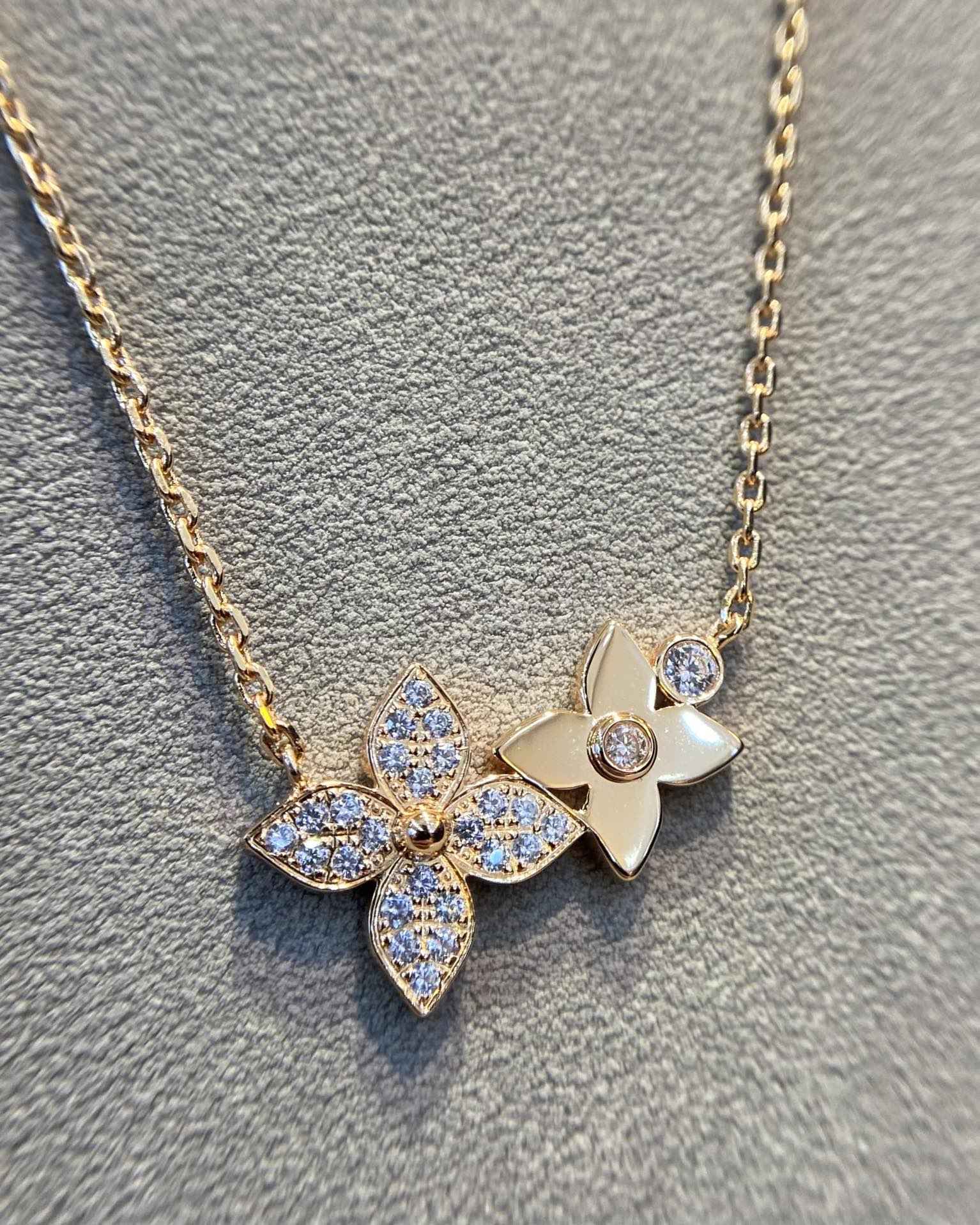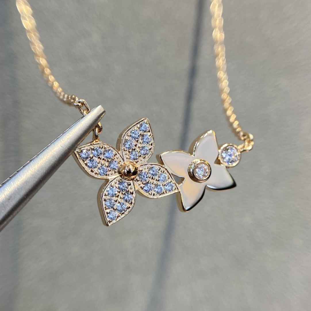 Lv 双花满钻四叶草项链