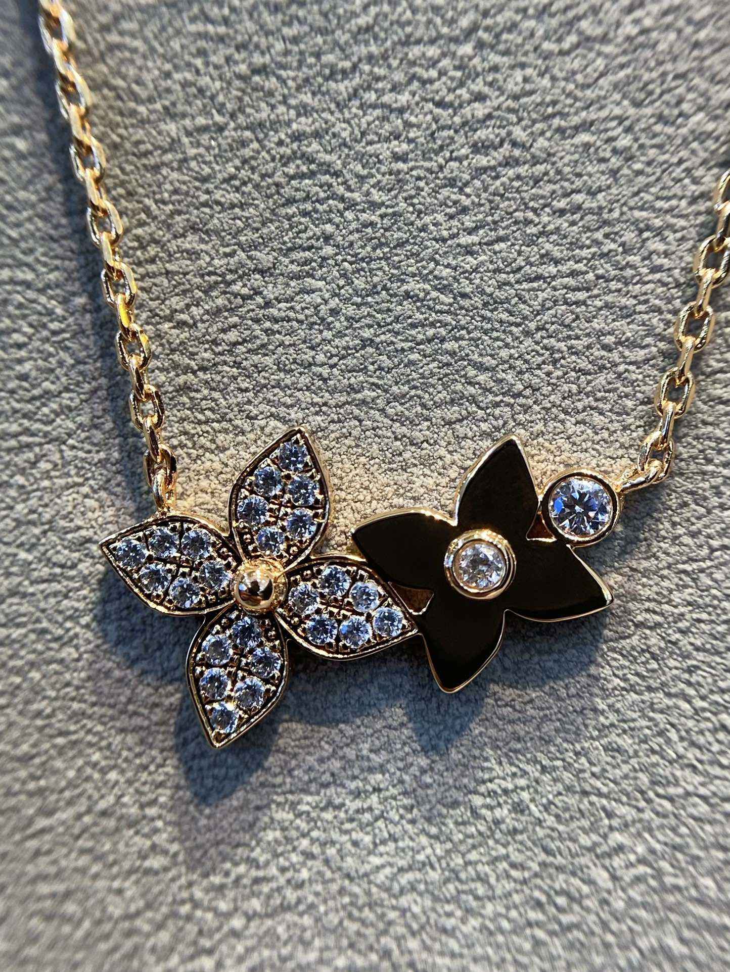 相较于四叶草项链,满钻四照花项链更显优雅与别致。
