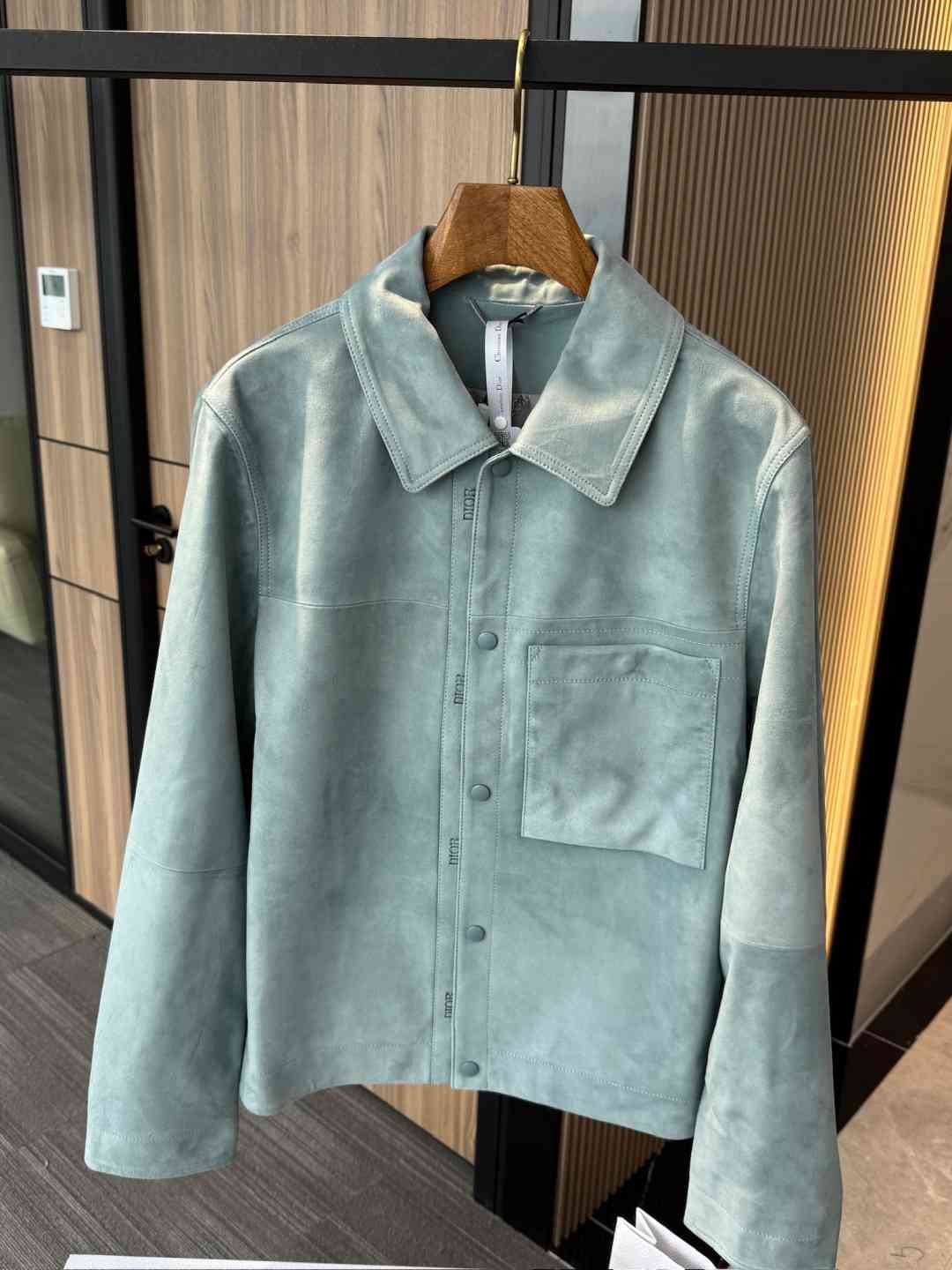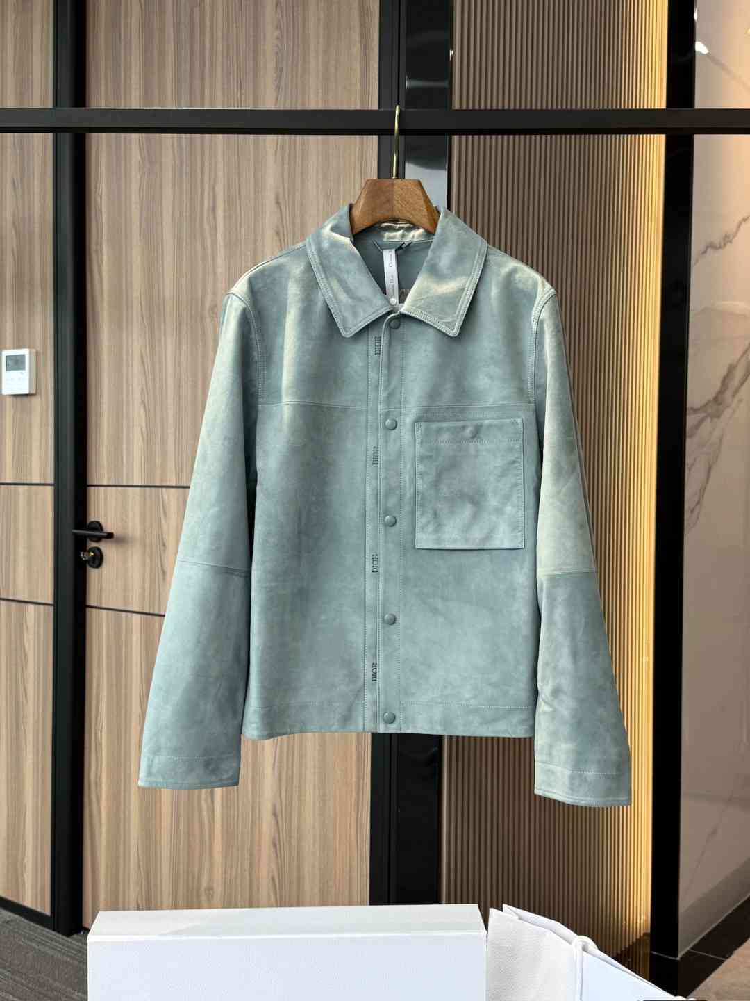 这款是衣橱经典单品。采用雾蓝色绒面羊皮革精心制作,按扣开合处饰以 D R凹印标志,正面饰以贴袋。可与四季的各式休闲单品搭配,打造更加精致的造型 。 迪奥 凹印标志|正面按扣开合 |胸前贴袋