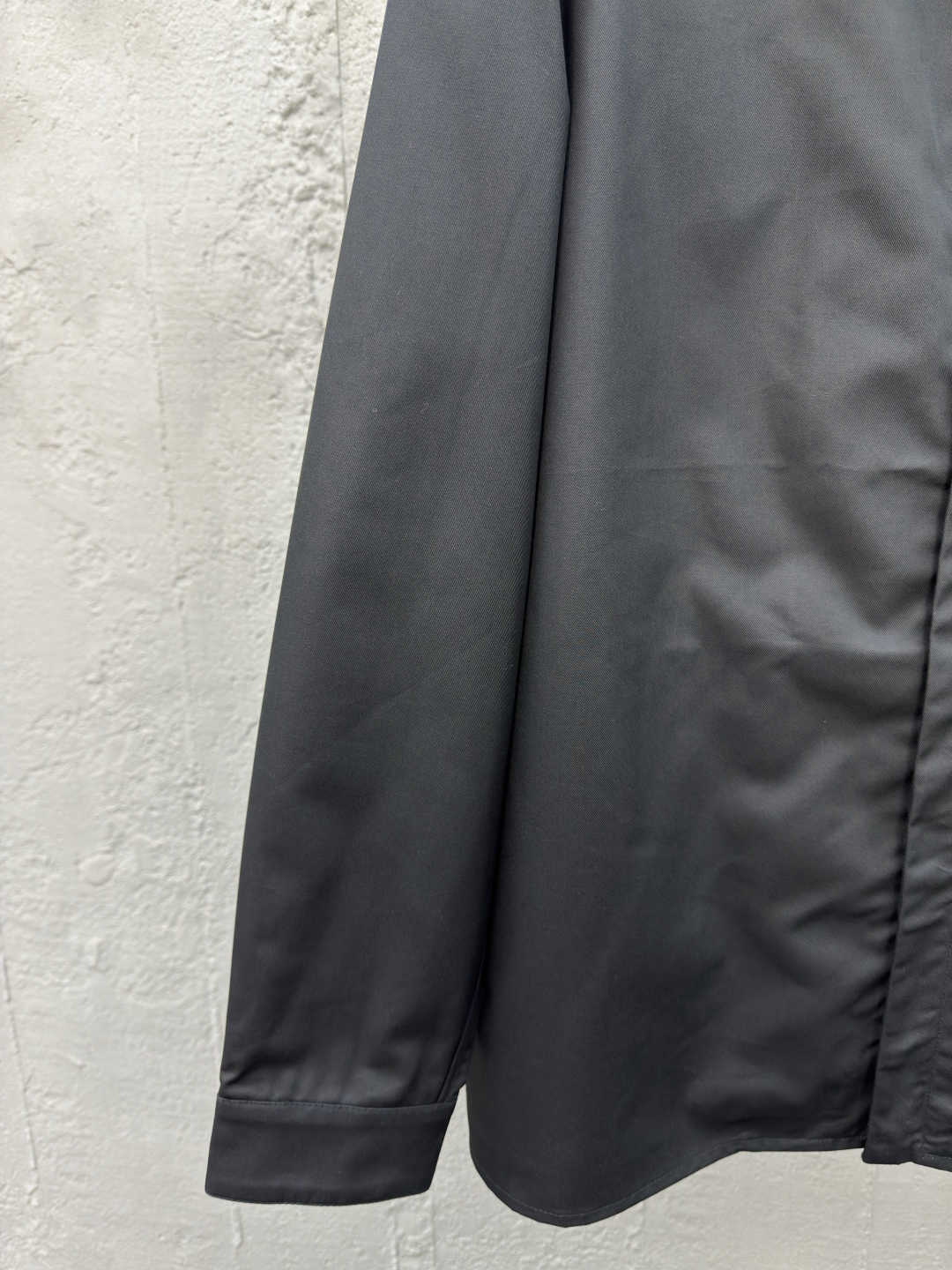 工艺说明:选用黑色华达呢面料,其紧密的纺织构造,使它具有良好的抗皱性,耐磨性和垂坠感。由于羊毛成分的加持使其拥有保暖性和透气性。现代版型修身剪裁和隐藏式拉链开合增添了低调的精致感。袋口同样也是隐藏式拉链开合,袋口首尾均运用口袋套结工艺加固。袋体边缘处紧密的缝线使其牢固和美观。左右设有侧插袋,袋口只做了0.5公分的包边,既保留了整体线条的流畅性又不失实用性。整体走线平直细腻,面料舒适柔软,颜色一致无色差