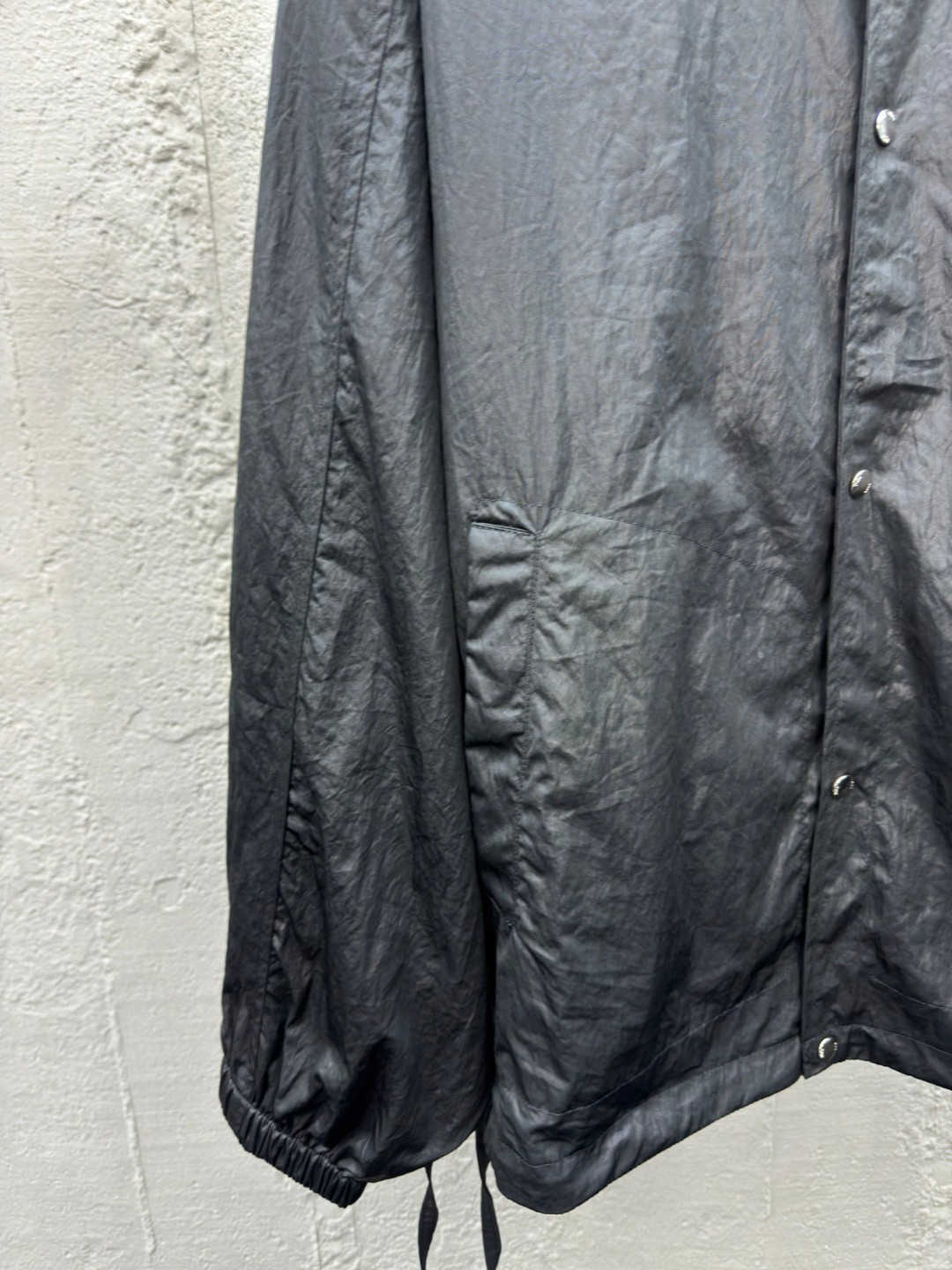 触感如同末来科技 原生态科技面料都在最表层包裹住一种昂贵的特制胶 改变其表面结构 再进行酵洗处理 采用进口机绣花