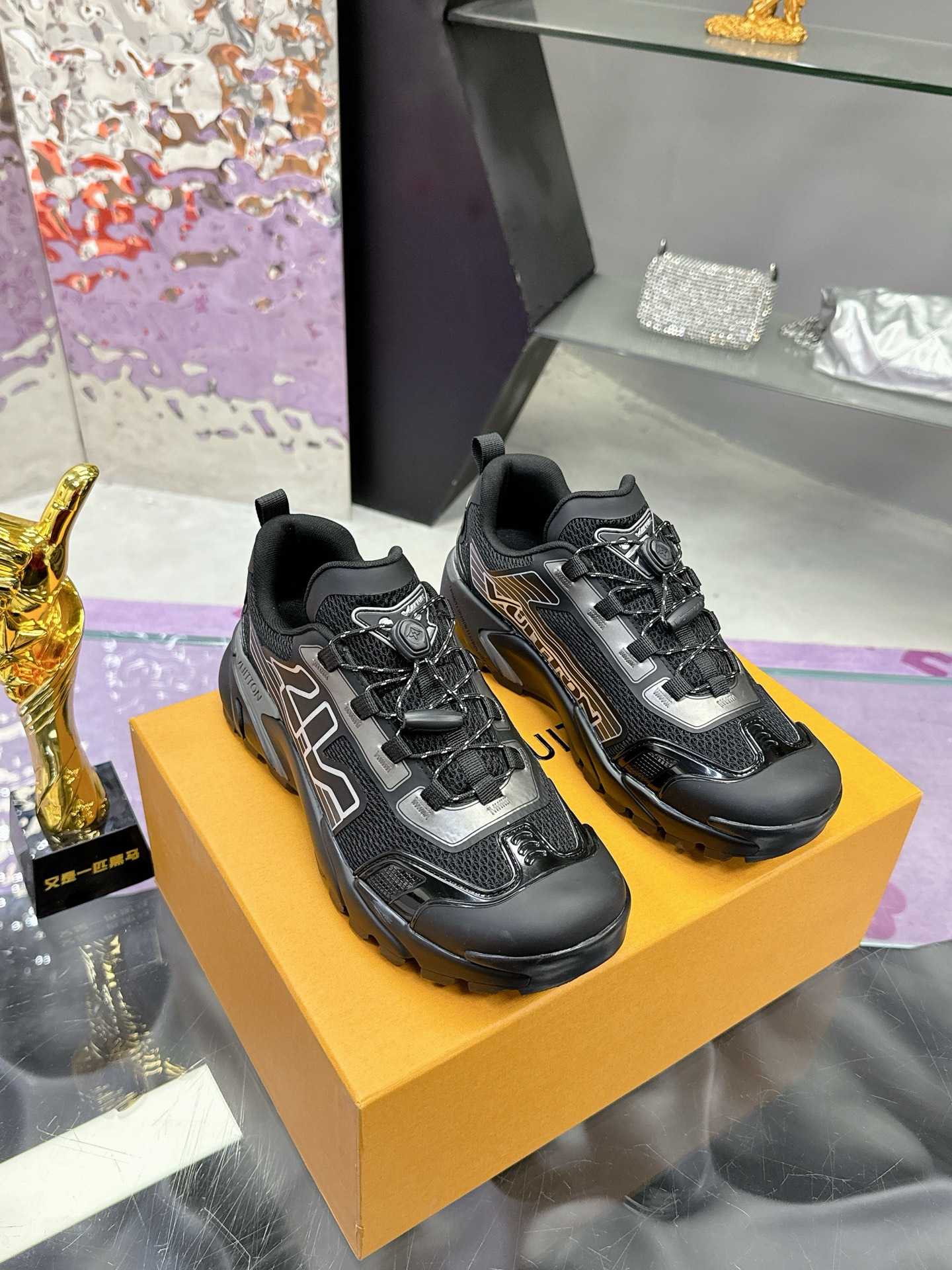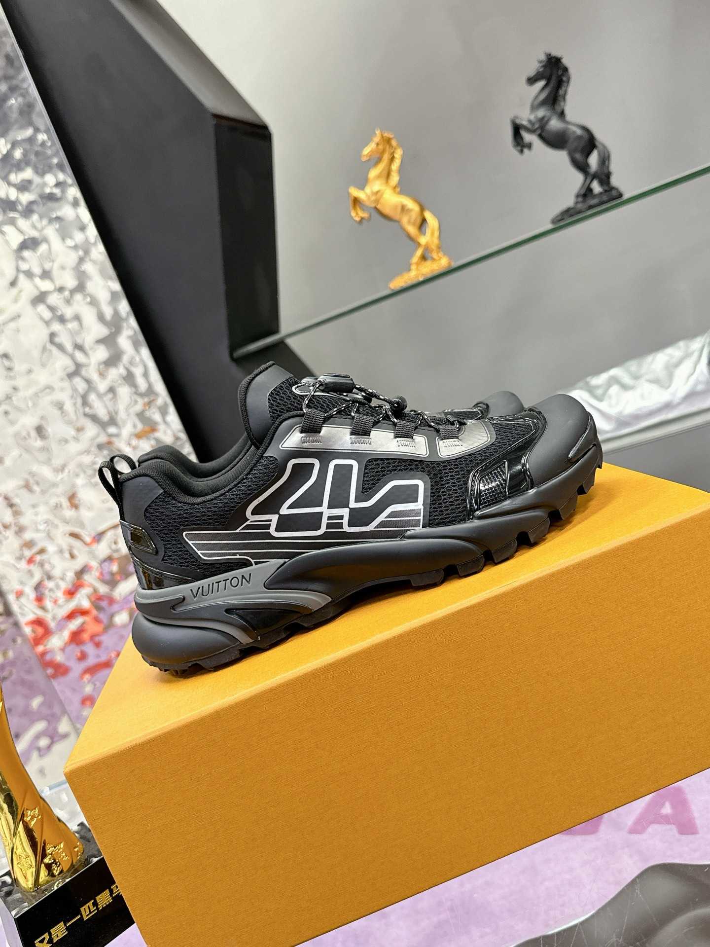 原版购入开发 做货 本款 Runner Tatic 运动鞋融合网格面料和饰带等科技材质,演绎传统登山鞋的灵感启发。 字母抒写于一侧,快速系带系统的套索扣点缀 Monogram 花卉和标识,轻盈耐磨的橡胶外底完善整体